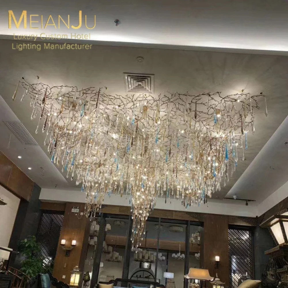 Wedding Hall Chandelier Hotel Hanging Pendant Light Customized Amber Crystal Chandelier Lighting for Lobby