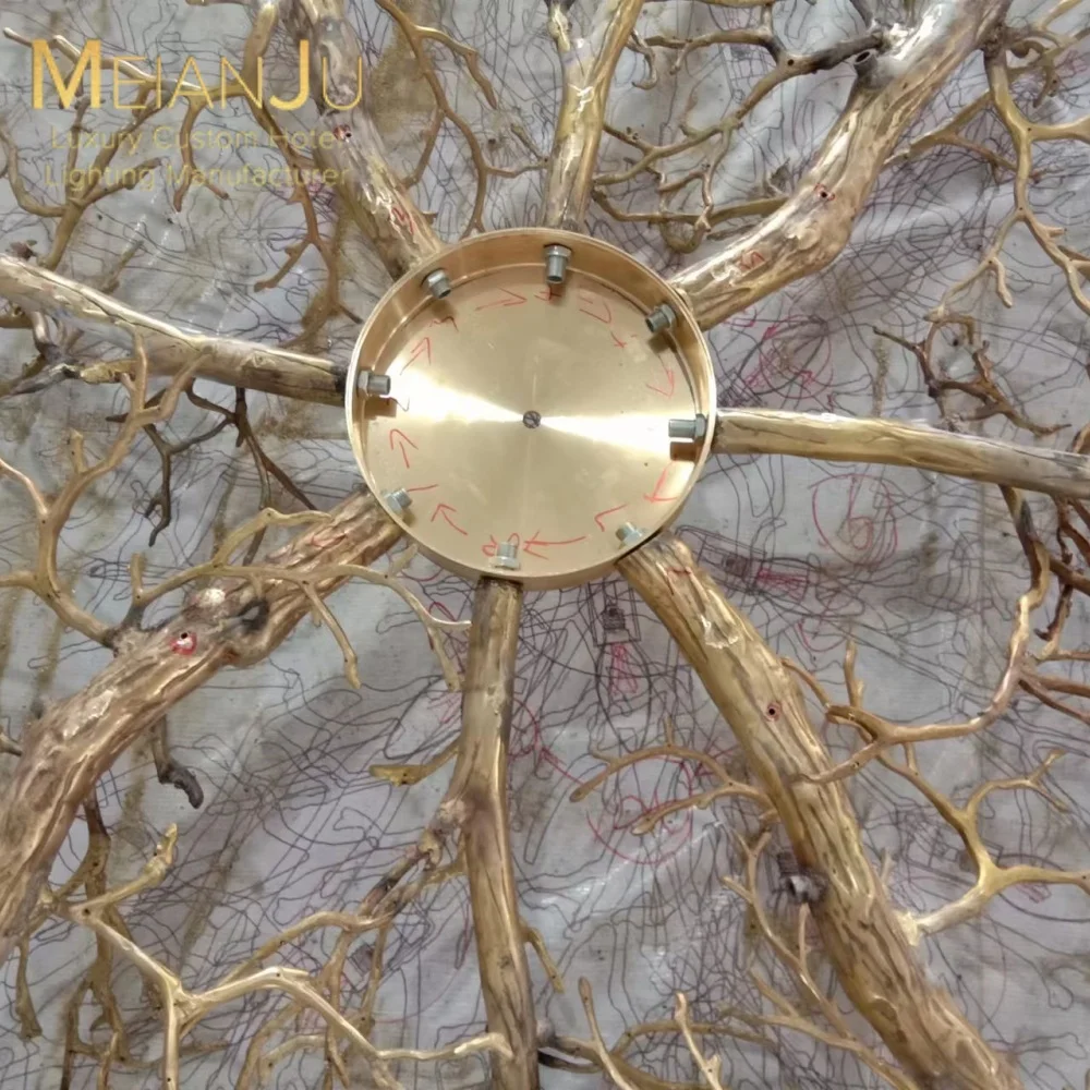 Custom Copper Tree Branch Teardrop Glass Chandelier Luxury Hand Forged Artisan Crafted for Grand Mansion Villa Living Room