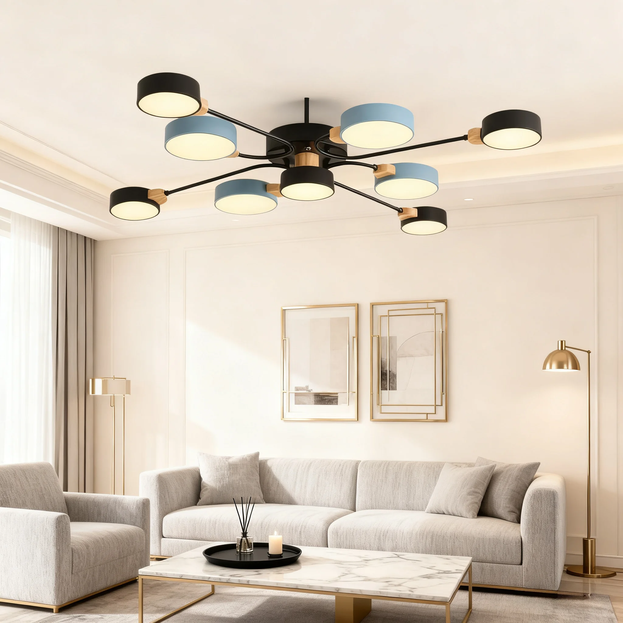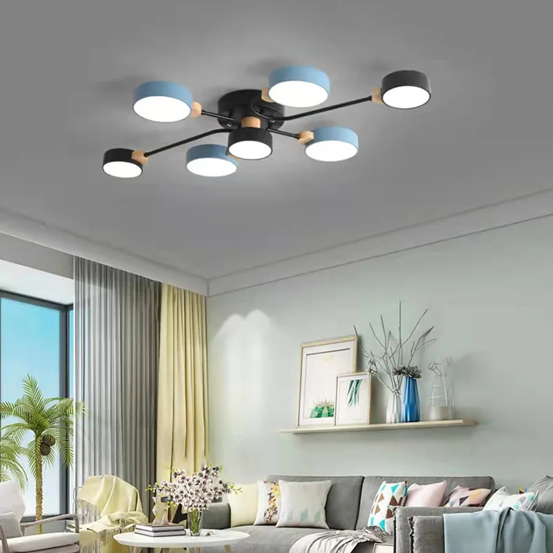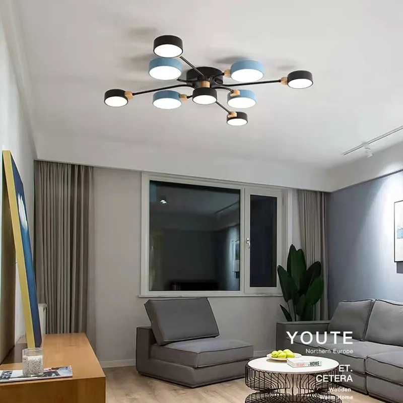 JACKSUN Nordic Macaron Ceiling Light Creative Living Room Bedroom Study Pendant Light Multi-Head Lighting Fixture for Hotel Room