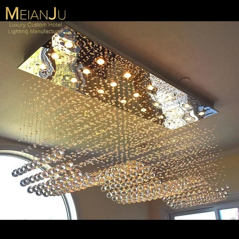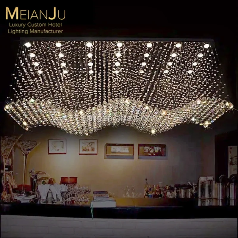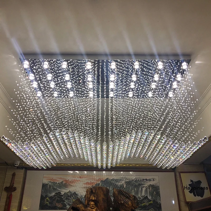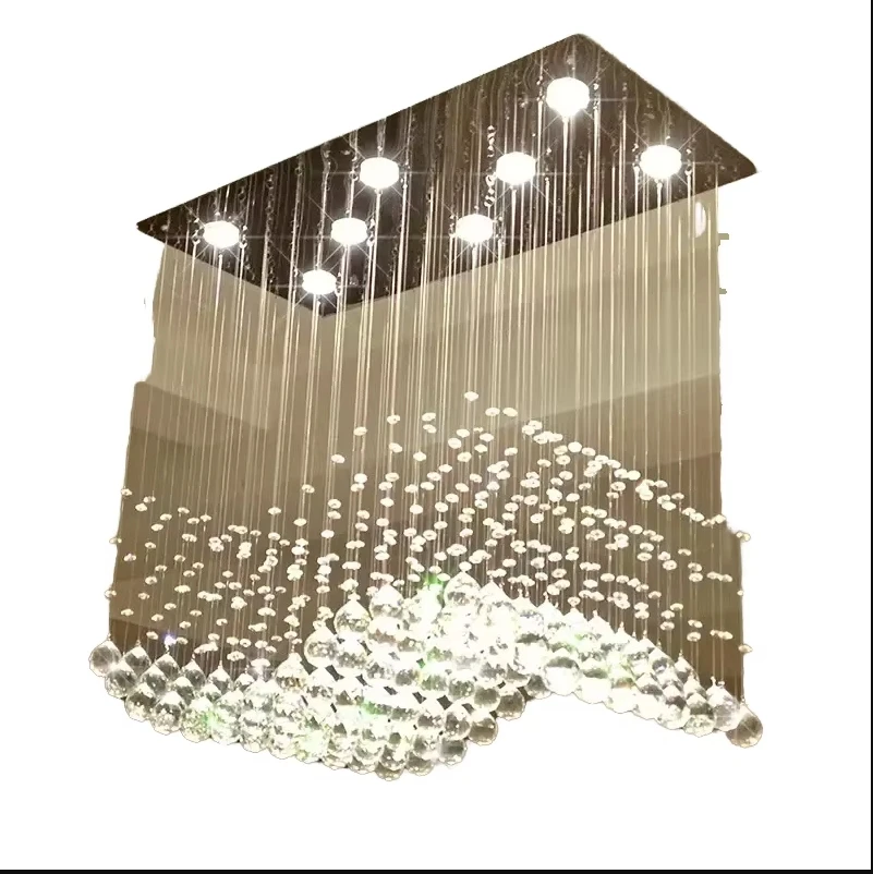 Modern Simple Rectangular Crystal Chandelier with Stainless Steel for Living Room Office Hotel Lobby Sales Project Installation