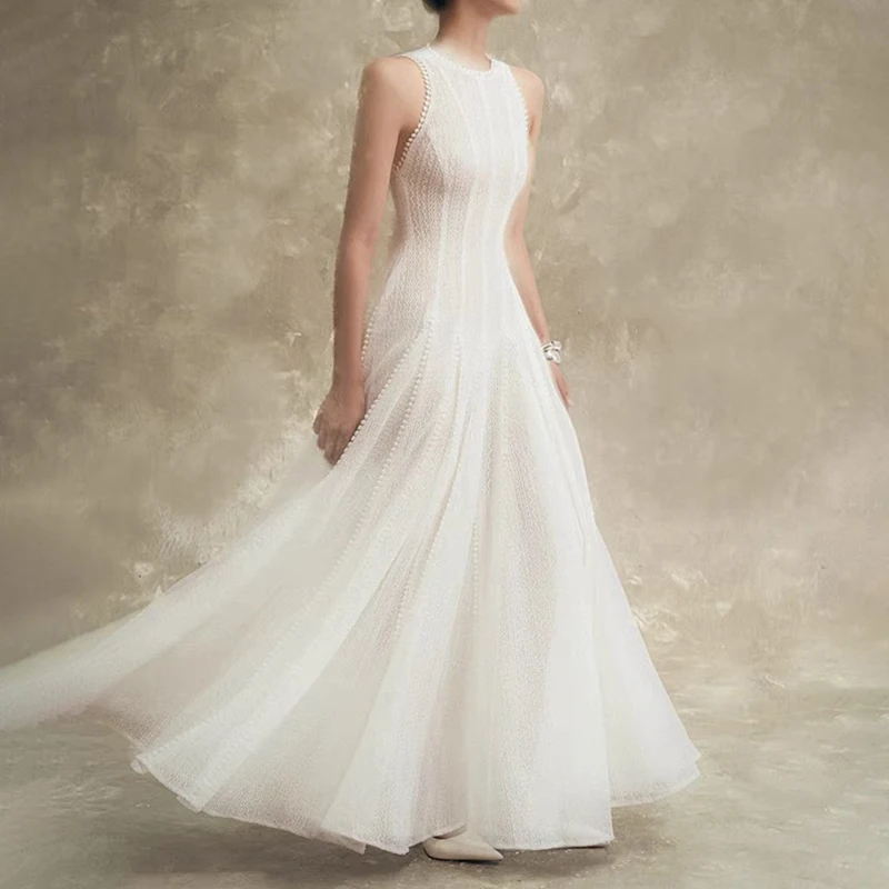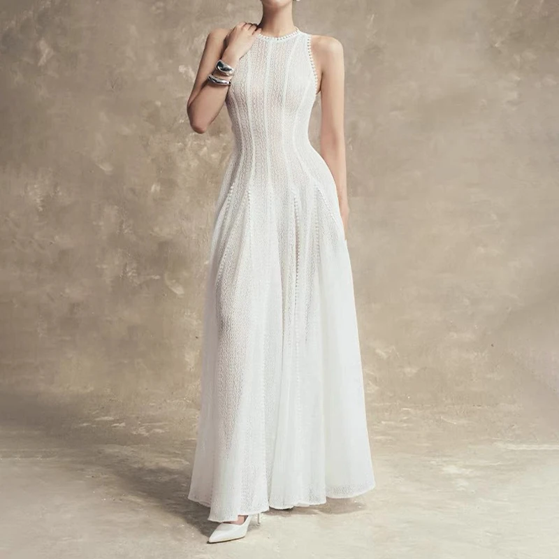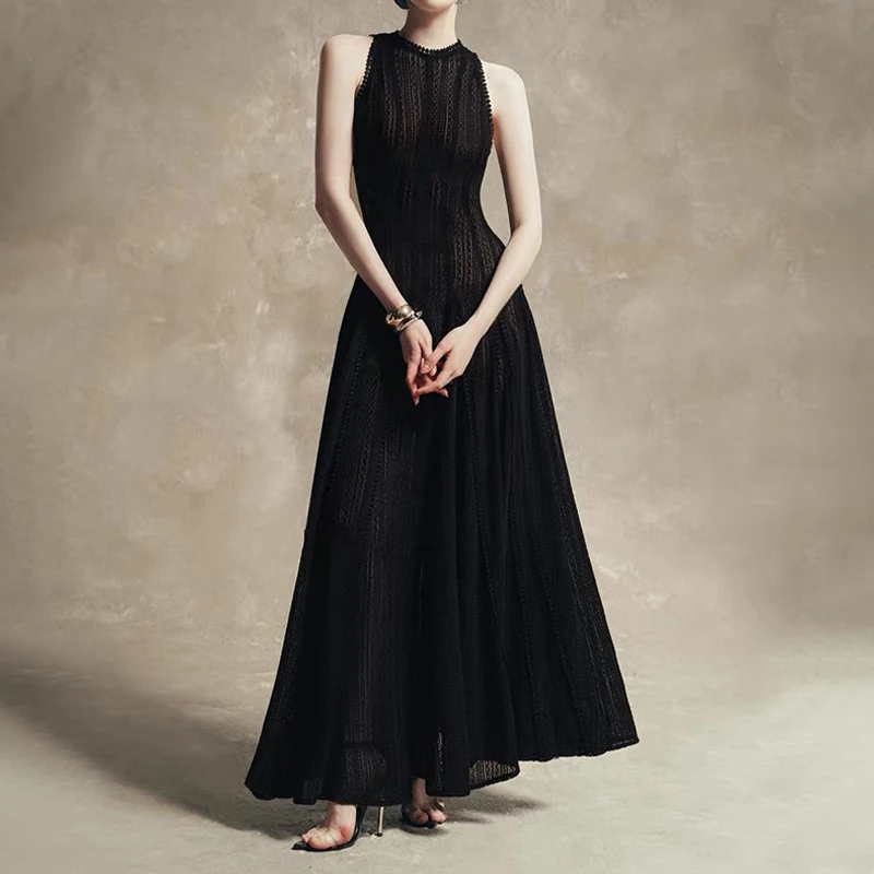 ZYHT 70117 Women Black Sleeveless a Line Pleated Club Party Long Dress Flowy Ladies Elegant Lace Summer Elegant Maxi Dress