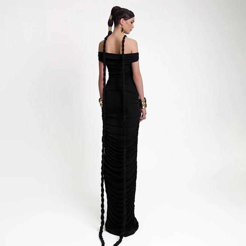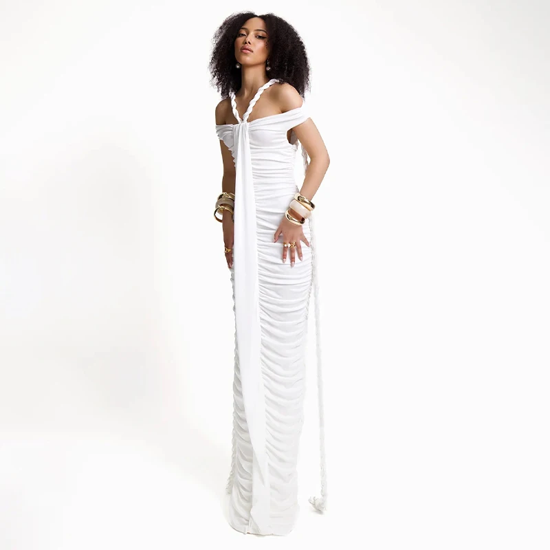 ZYHT 70078 Maxi Off Shoulder Sleeveless Cross Straps Dress Spandex Polyester Casual Summer Wear Cocktail Party Dresses