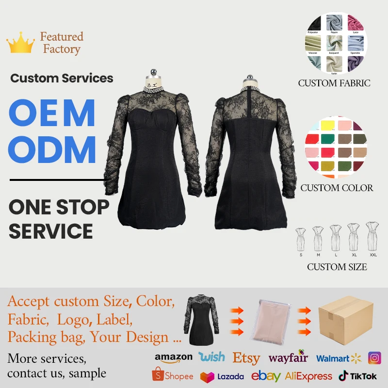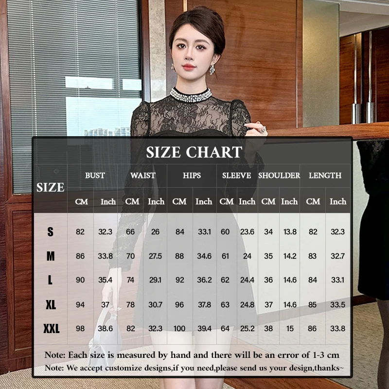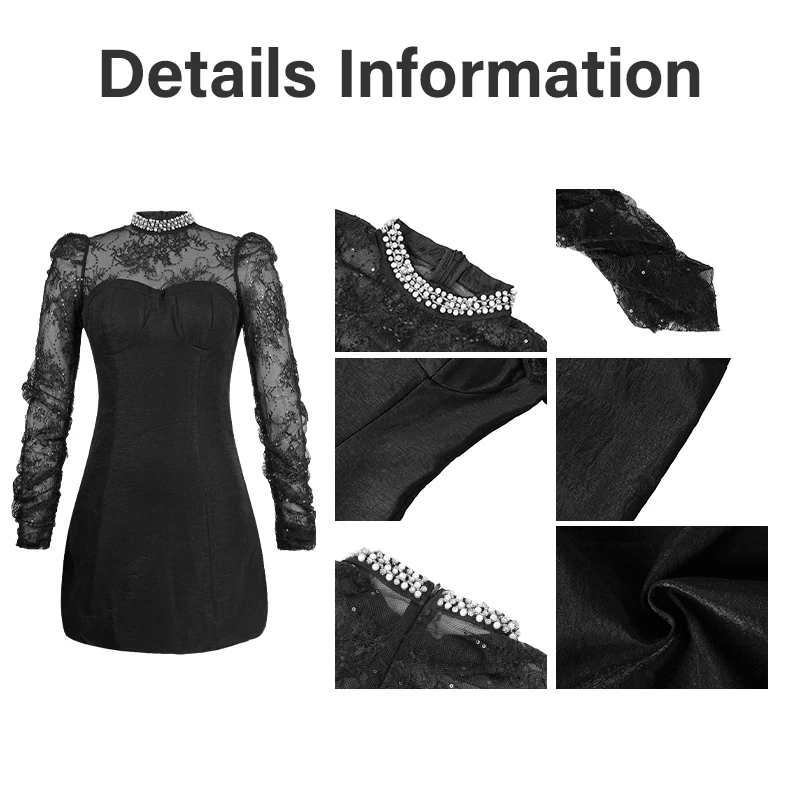 ZYHT 9674 See-through Sexy Long Sleeve Slim Lace Short a Line Dress Beading Stand Collar Black Sequins Dress