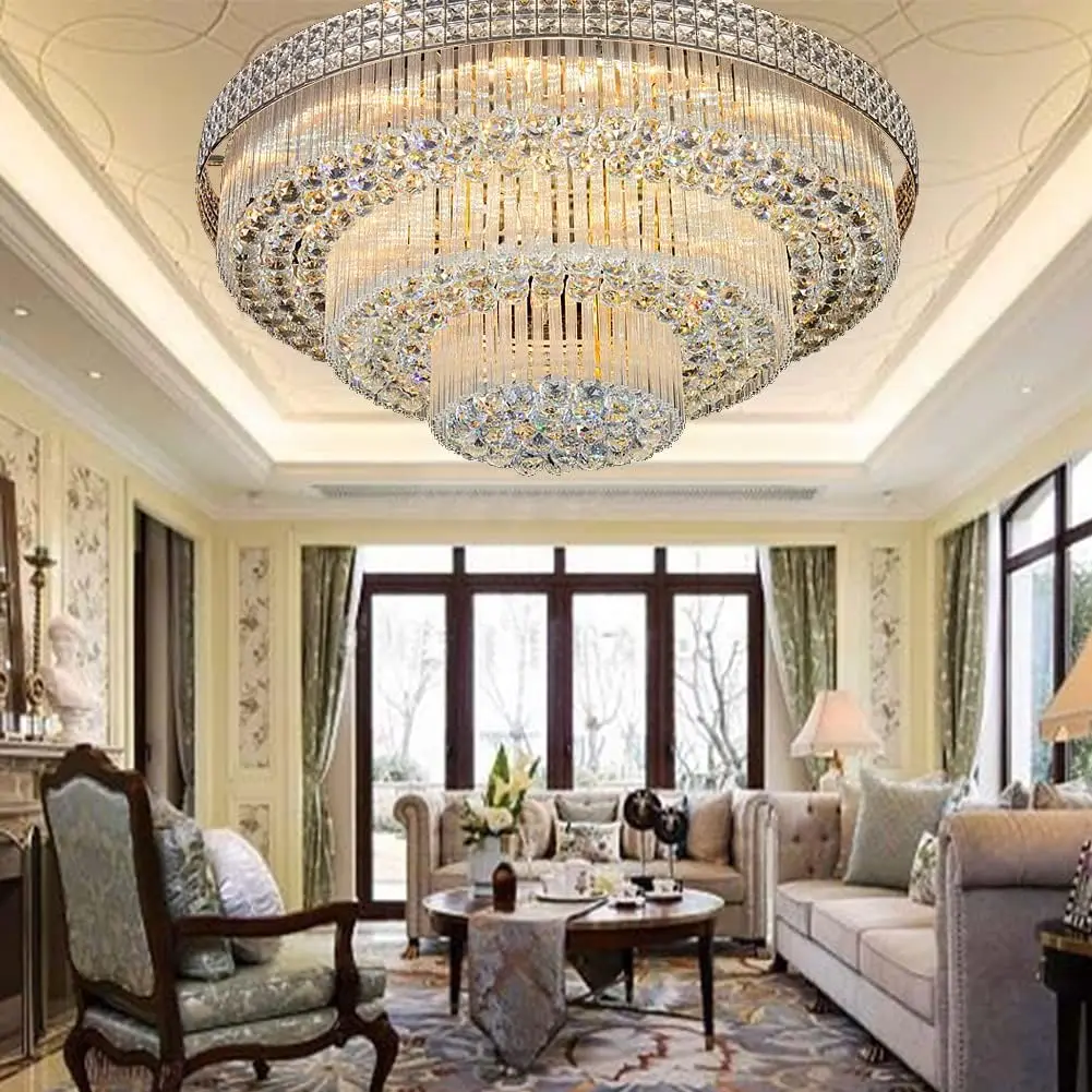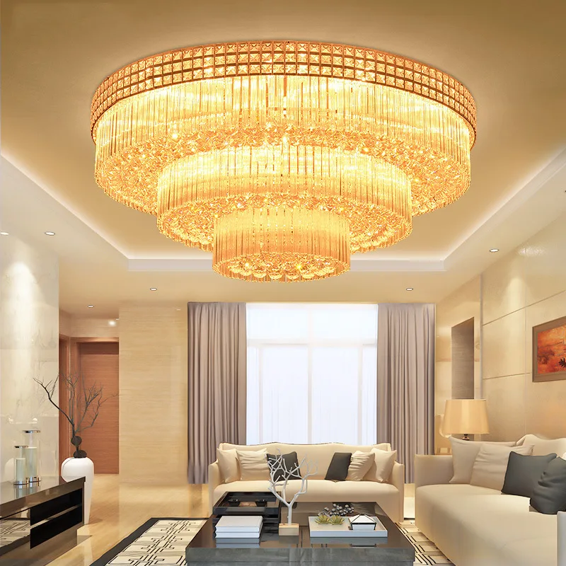 JACKSUN Modern Luxury K9 Crystal Ceiling Lamp Cake Design Round Livingroom Chandelier Simplicity Retro Circular Ceiling Light