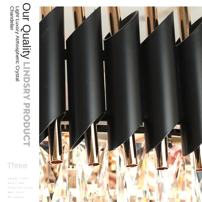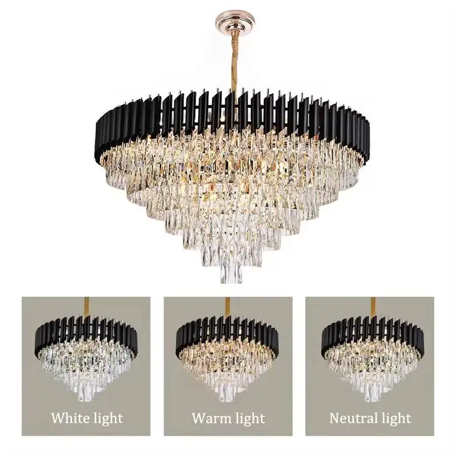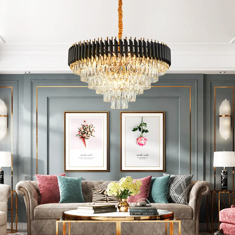 JACKSUN Modern Large K9 Crystal Chandelier Round Black Rustic Pendant Lamps Hanging Pendant Ceiling Light Hotel Living Room