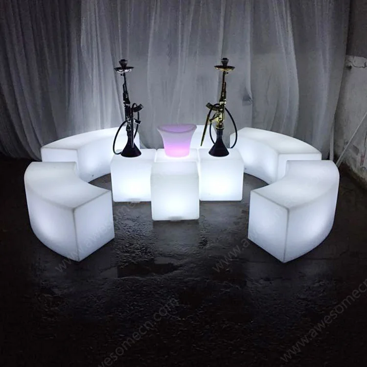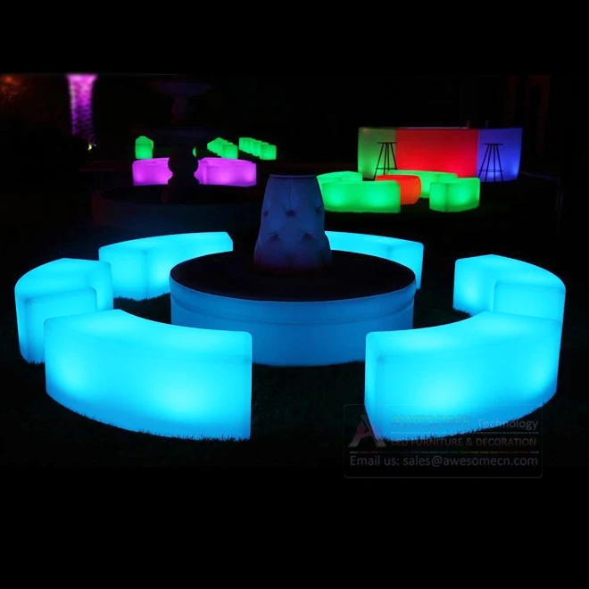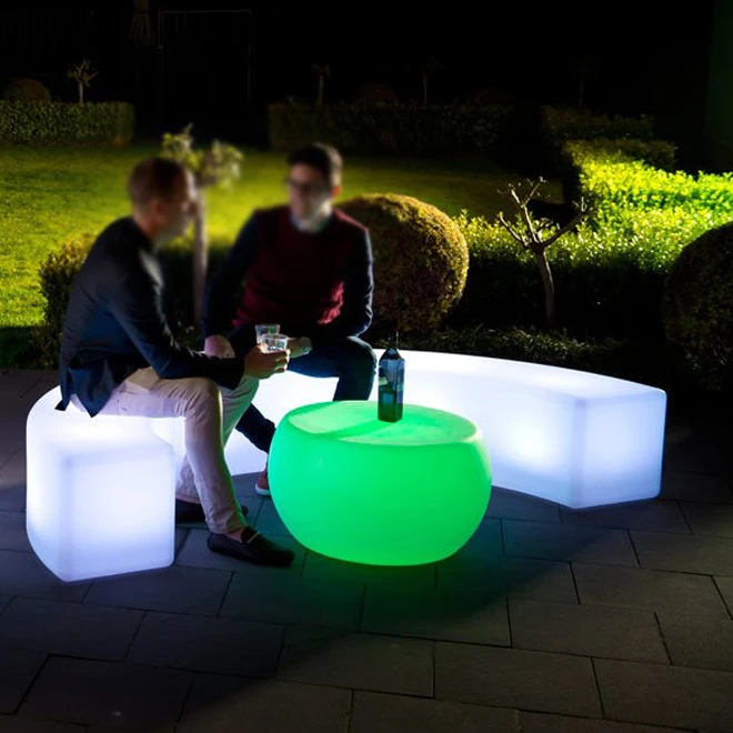 LED Illuminated Long Snake Bench Garden Set Outdoor Furniture Including Chairs