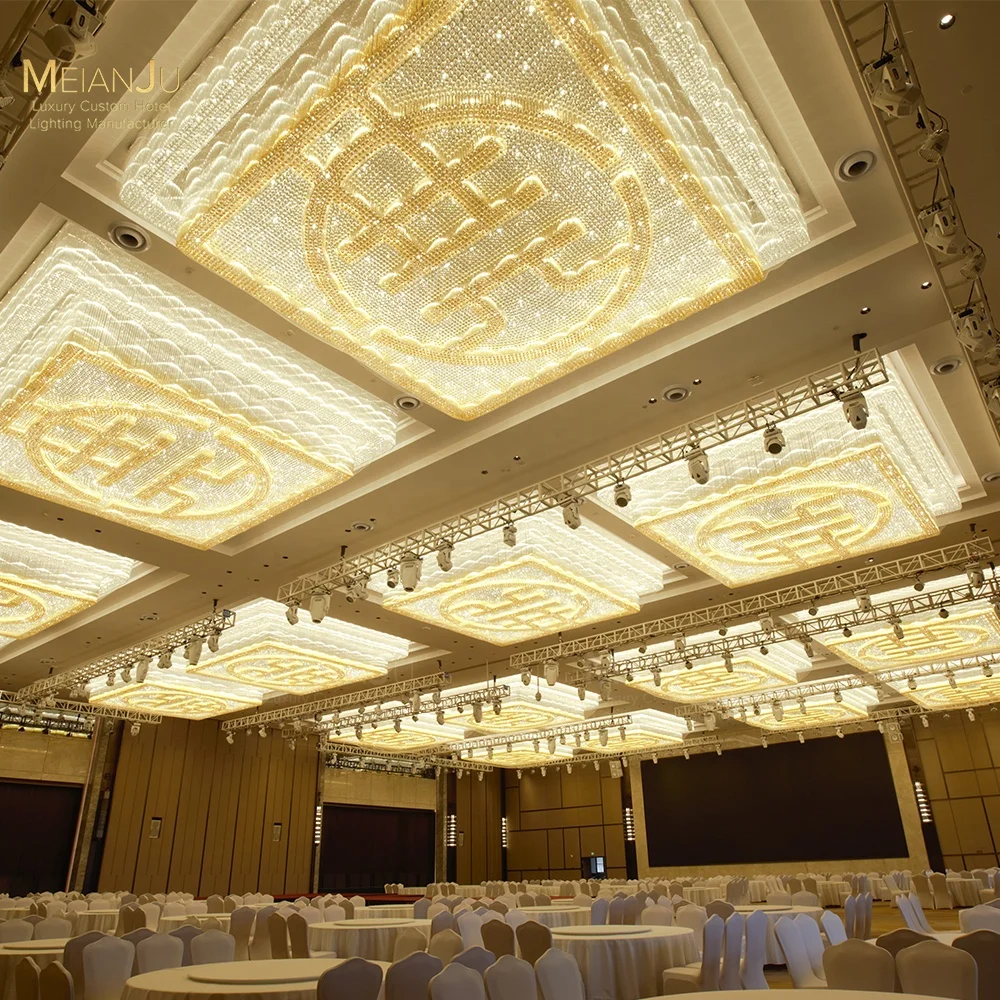 Wedding Hall Chandelier Hotel Hanging Pendant Light Customized Amber Crystal Chandelier Lighting for Lobby