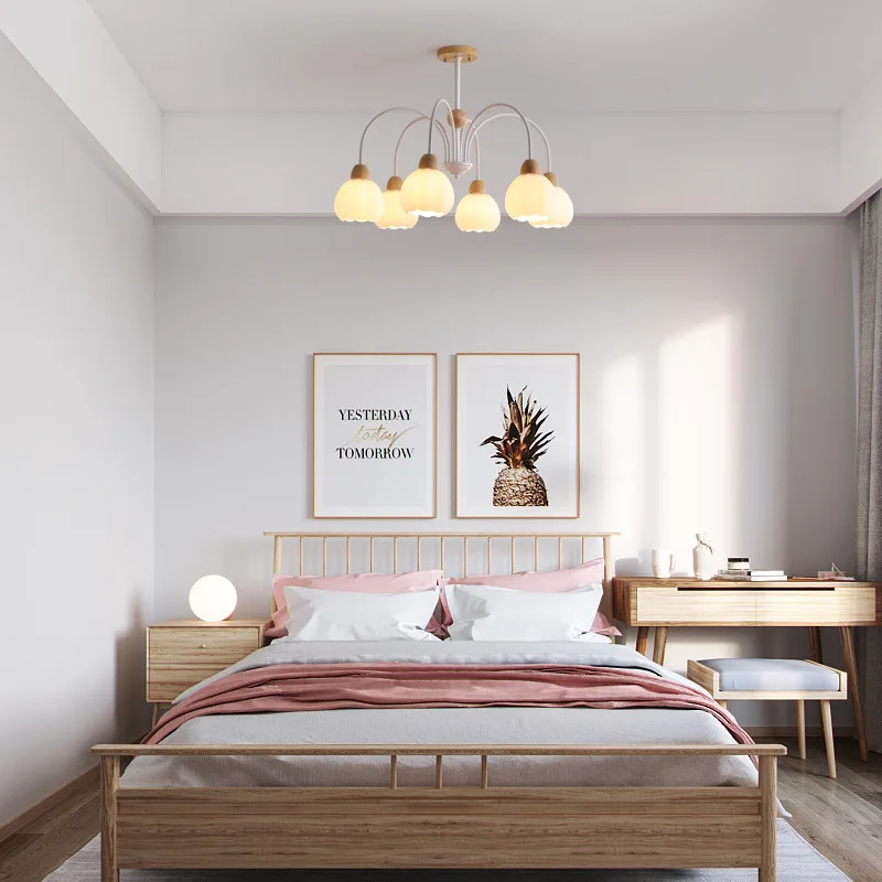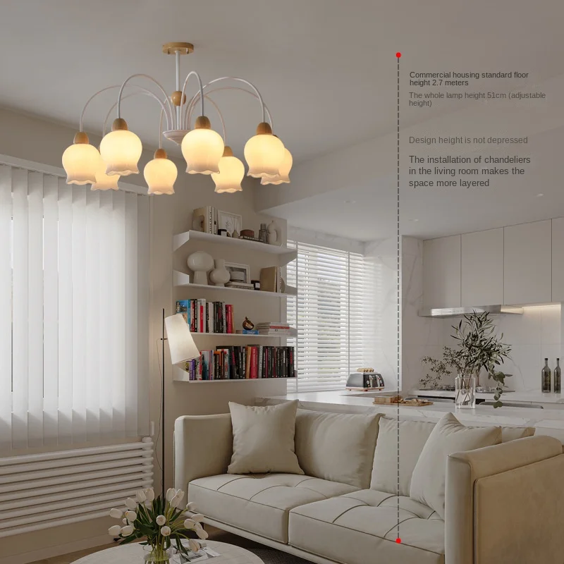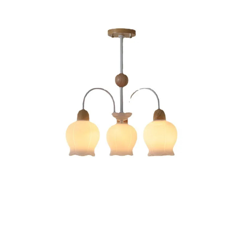 JACKSUN French Cream Lily of Valley Flower Chandelier Simple Modern Restaurant Lamp for Ancient Pastoral Bedroom Pendant Lights