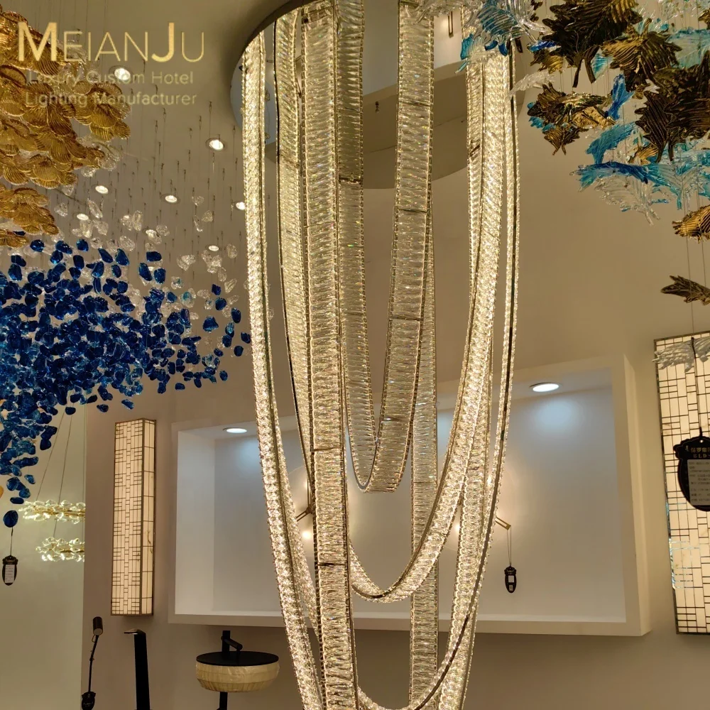 Zeal Lighting Hotel Lobby Hall Decorative Large Hanging Light Customized Long Gold Crystal Elegant Chandelier