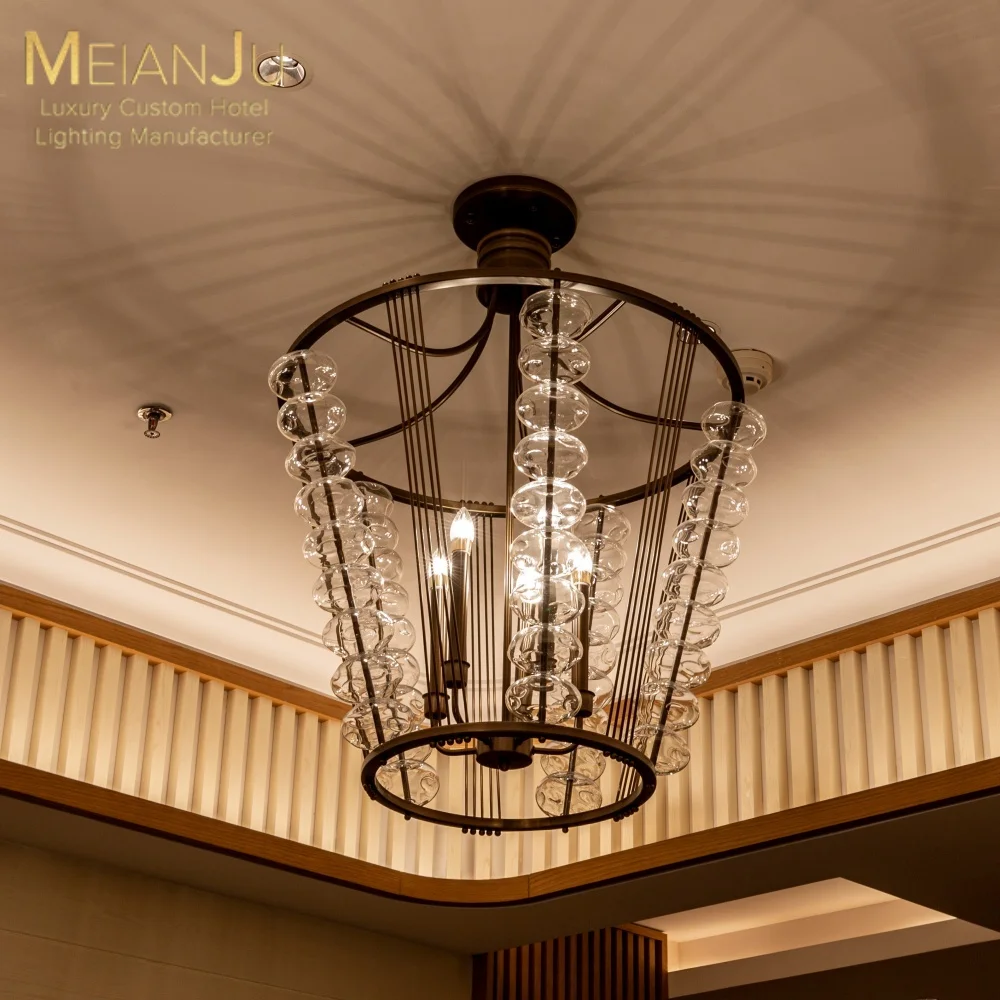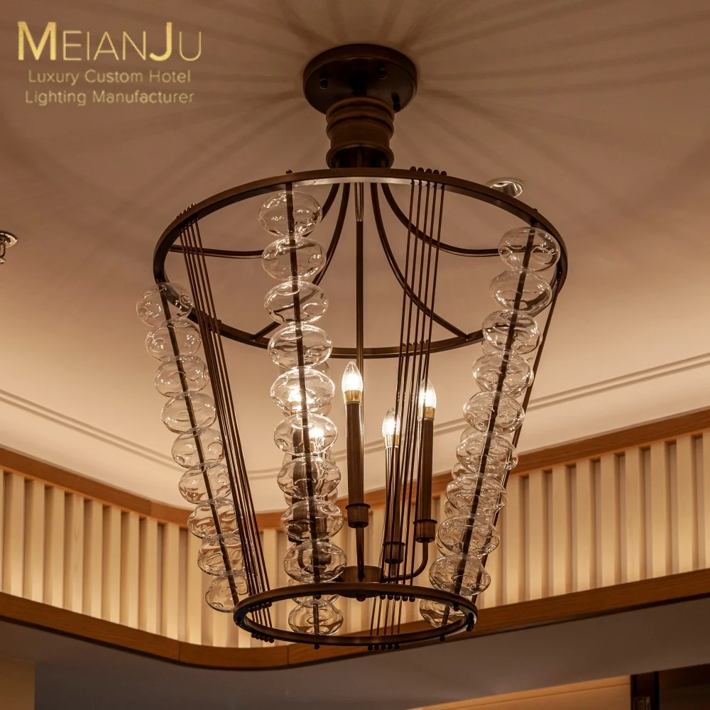 Wedding Hall Chandelier Hotel Hanging Pendant Light Customized Amber Crystal Chandelier Lighting for Lobby