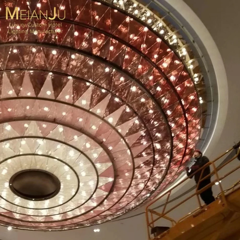 Wedding Hall Chandelier Hotel Hanging Pendant Light Customized Amber Crystal Chandelier Lighting for Lobby