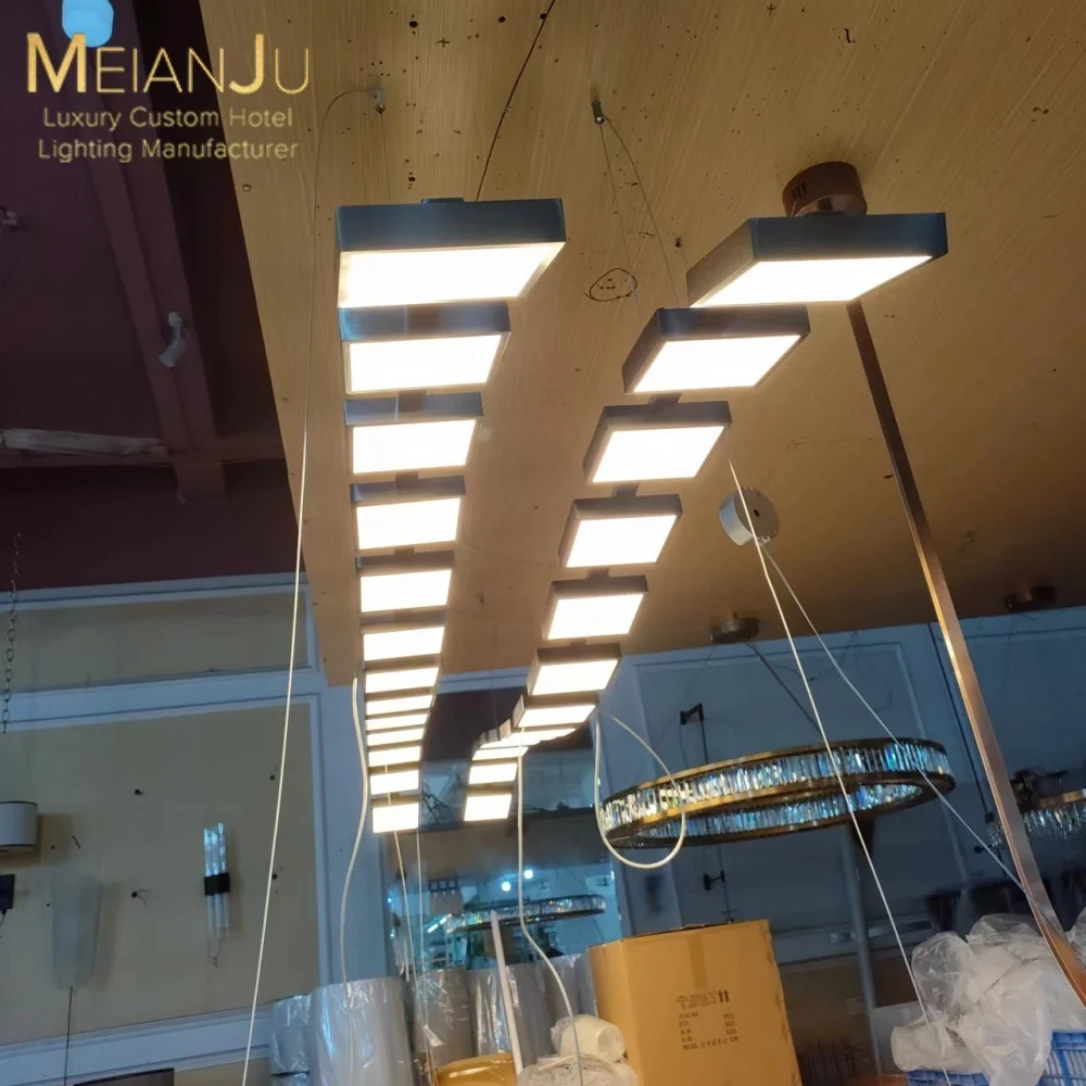 Modern Luxury Bar Island Lighting Wavy Box Chandelier Matte Acrylic Diffuser New Collection Branch Chandelier for Hotel
