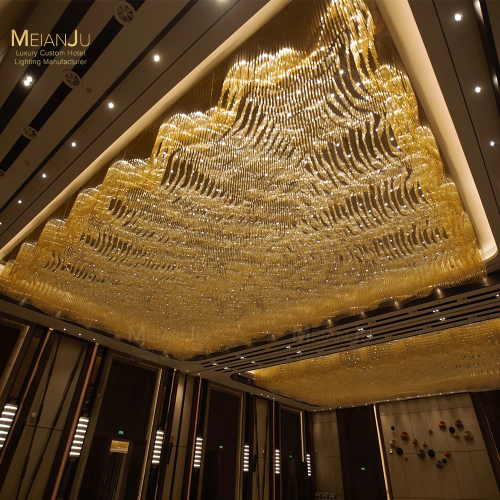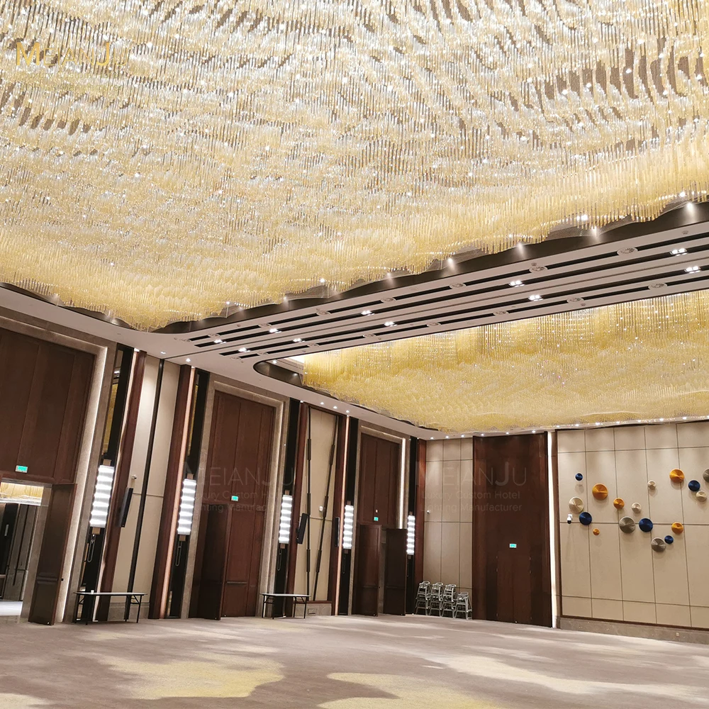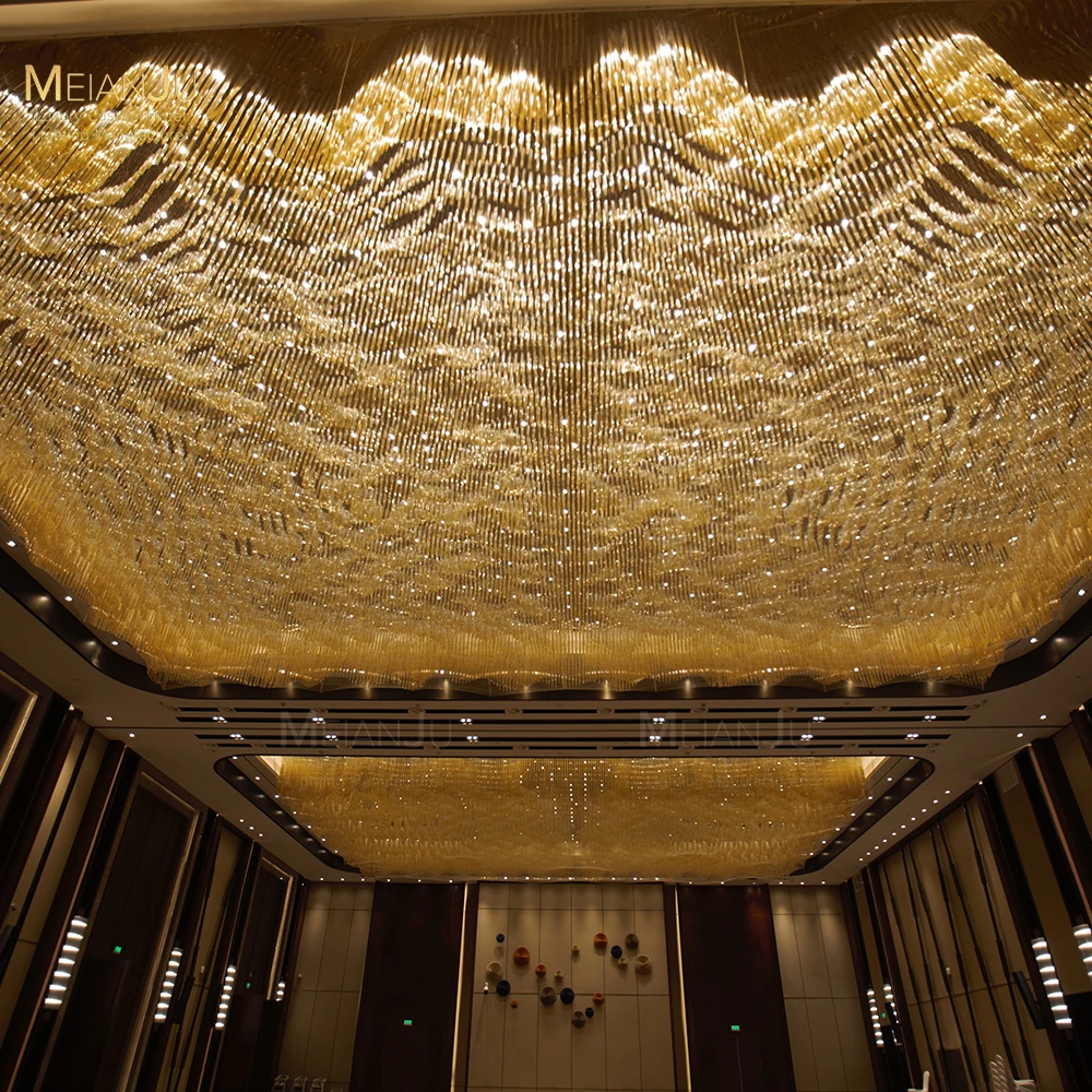 Wedding Hall Chandelier Hotel Hanging Pendant Light Customized Amber Crystal Chandelier Lighting for Lobby