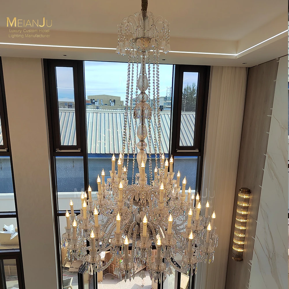 Zeal Lighting Hotel Lobby Hall Decorative Large Hanging Light Customized Long Gold Crystal Elegant Chandelier