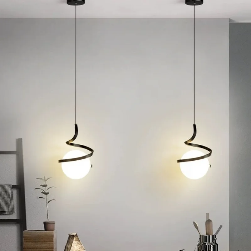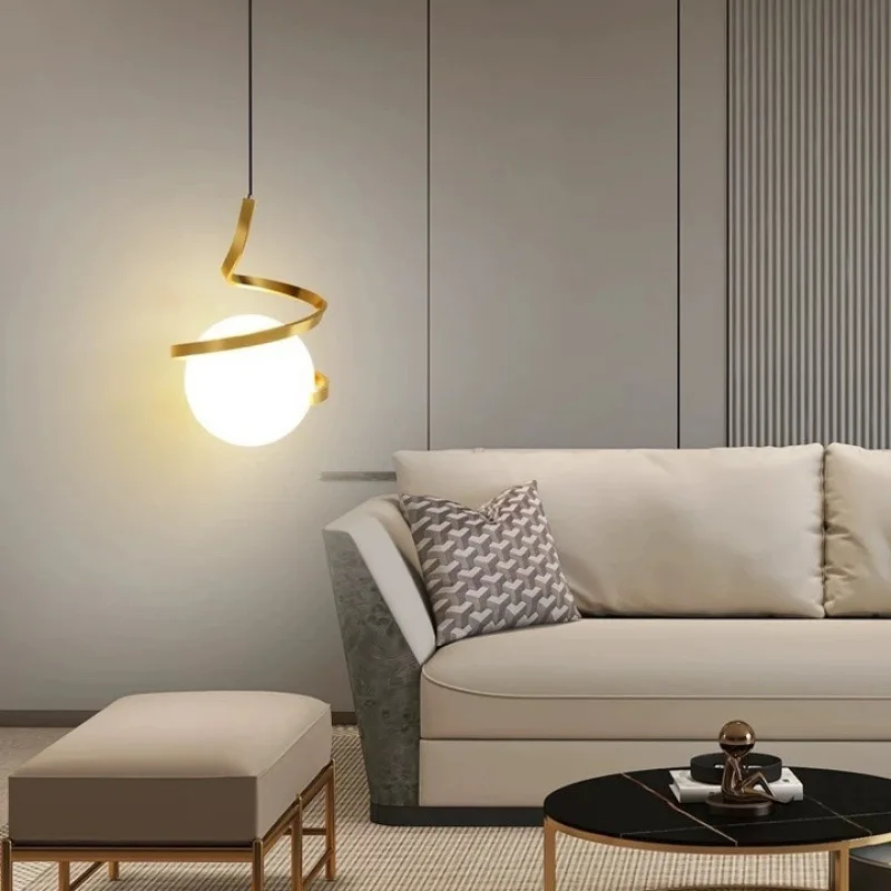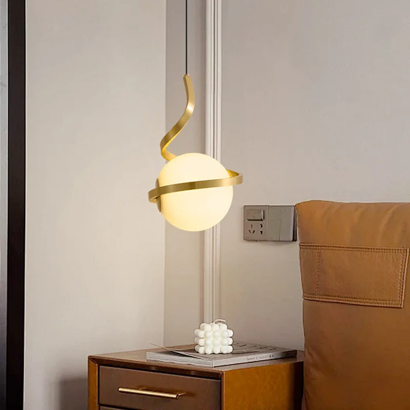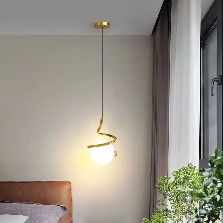 JACKSUN Modern Gold Pendant Light Glass Globe Chandelier Background Wall Lamp Bedside Small Single Head Pendant Light