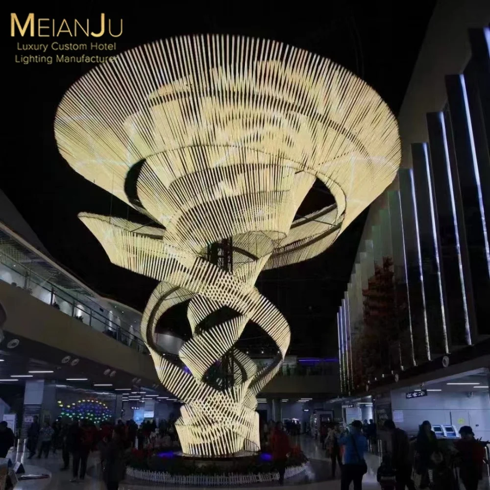 Wedding Hall Chandelier Hotel Hanging Pendant Light Customized Amber Crystal Chandelier Lighting for Lobby