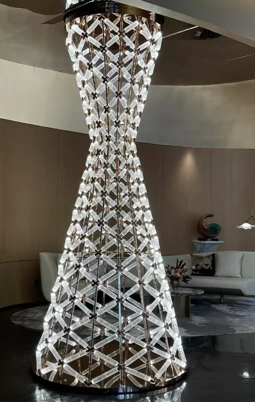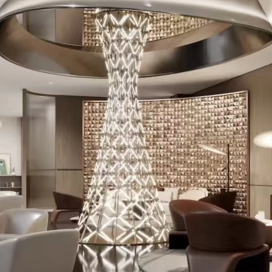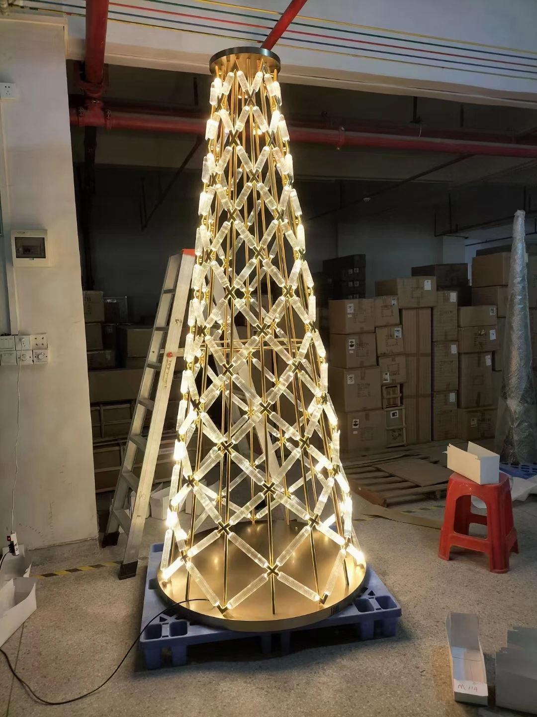 Zeal Lighting Hotel Lobby Hall Decorative Large Hanging Light Customized Long Gold Crystal Elegant Chandelier
