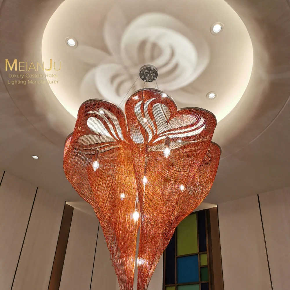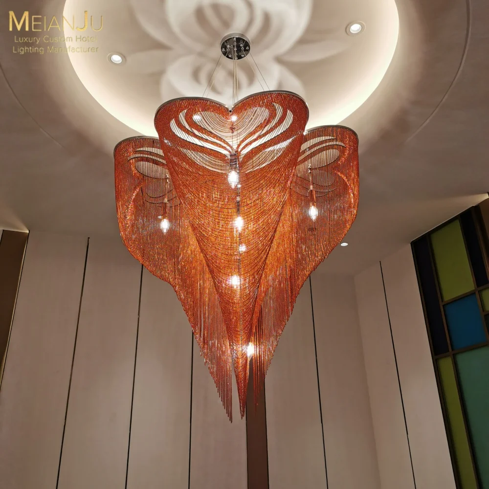 Wedding Hall Chandelier Hotel Hanging Pendant Light Customized Amber Crystal Chandelier Lighting for Lobby