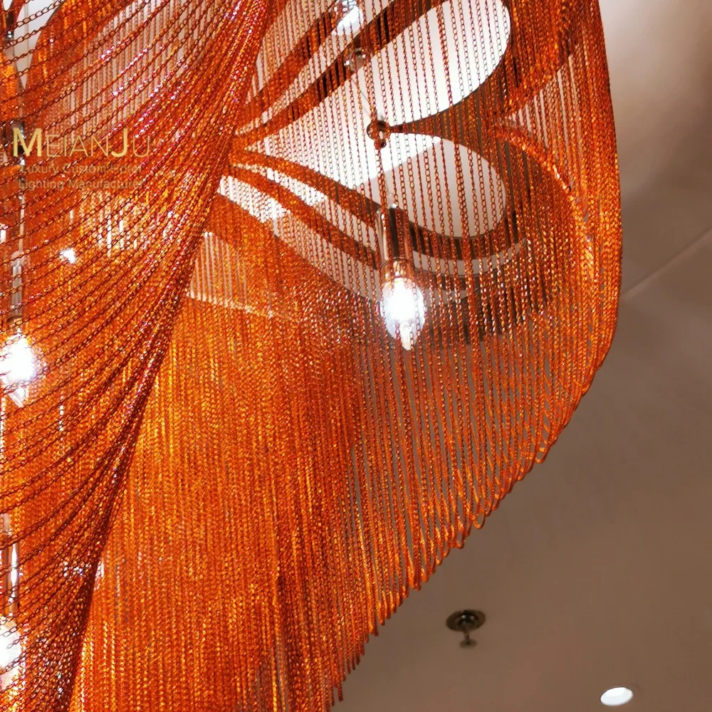 Zeal Lighting Dining Room Villa Decorative Fringe Pendant Light Modern Aluminum Tassel Chain Chandelier
