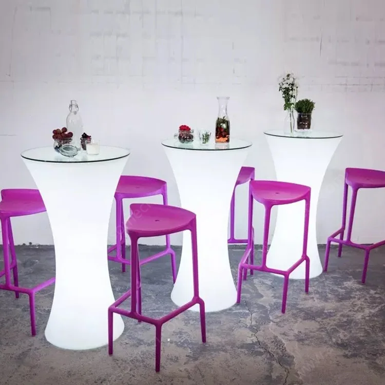 Outdoor Luminous Tall Small Waist Table Modern Creative Cocktail High Foot Table LED Luminous Slim Waist Decor