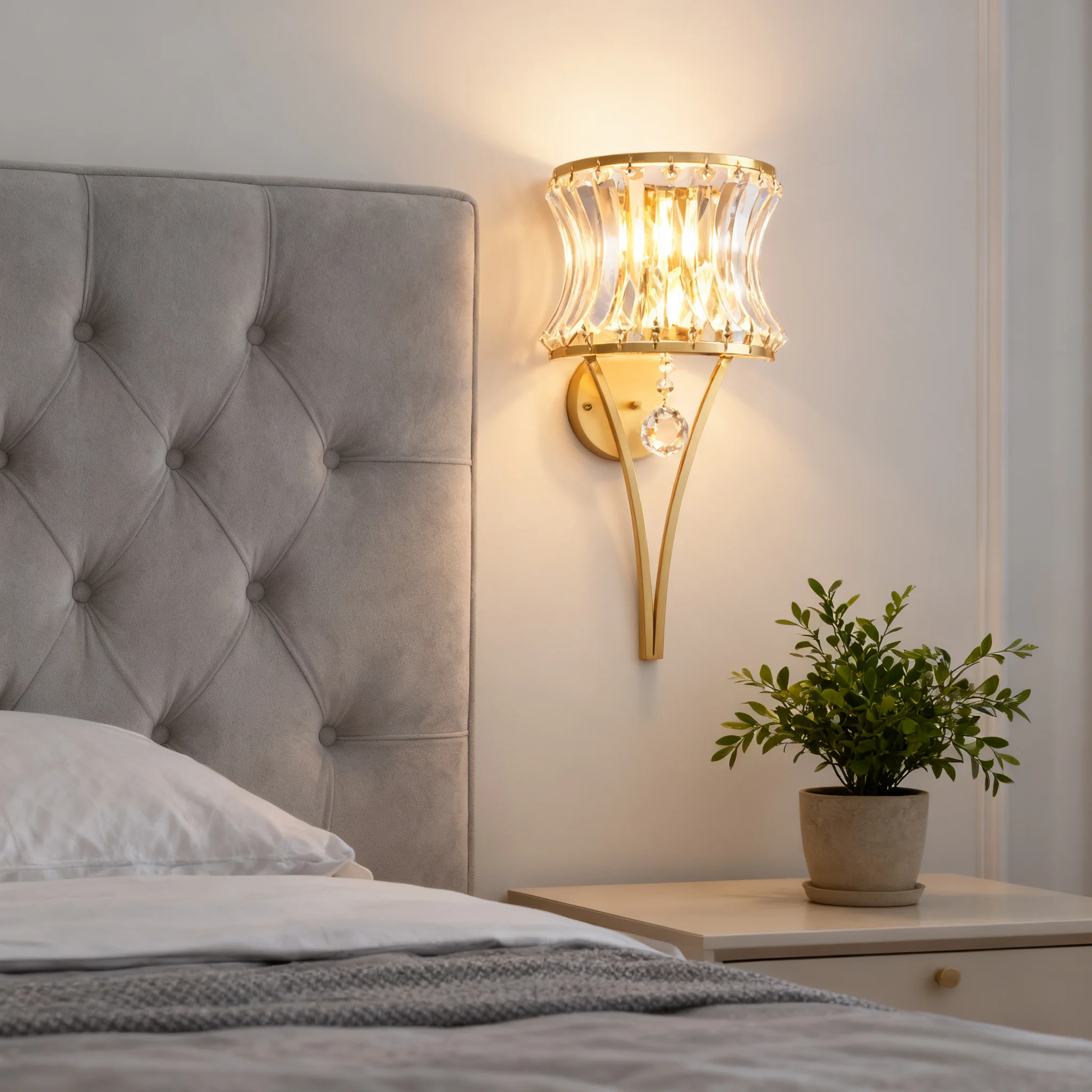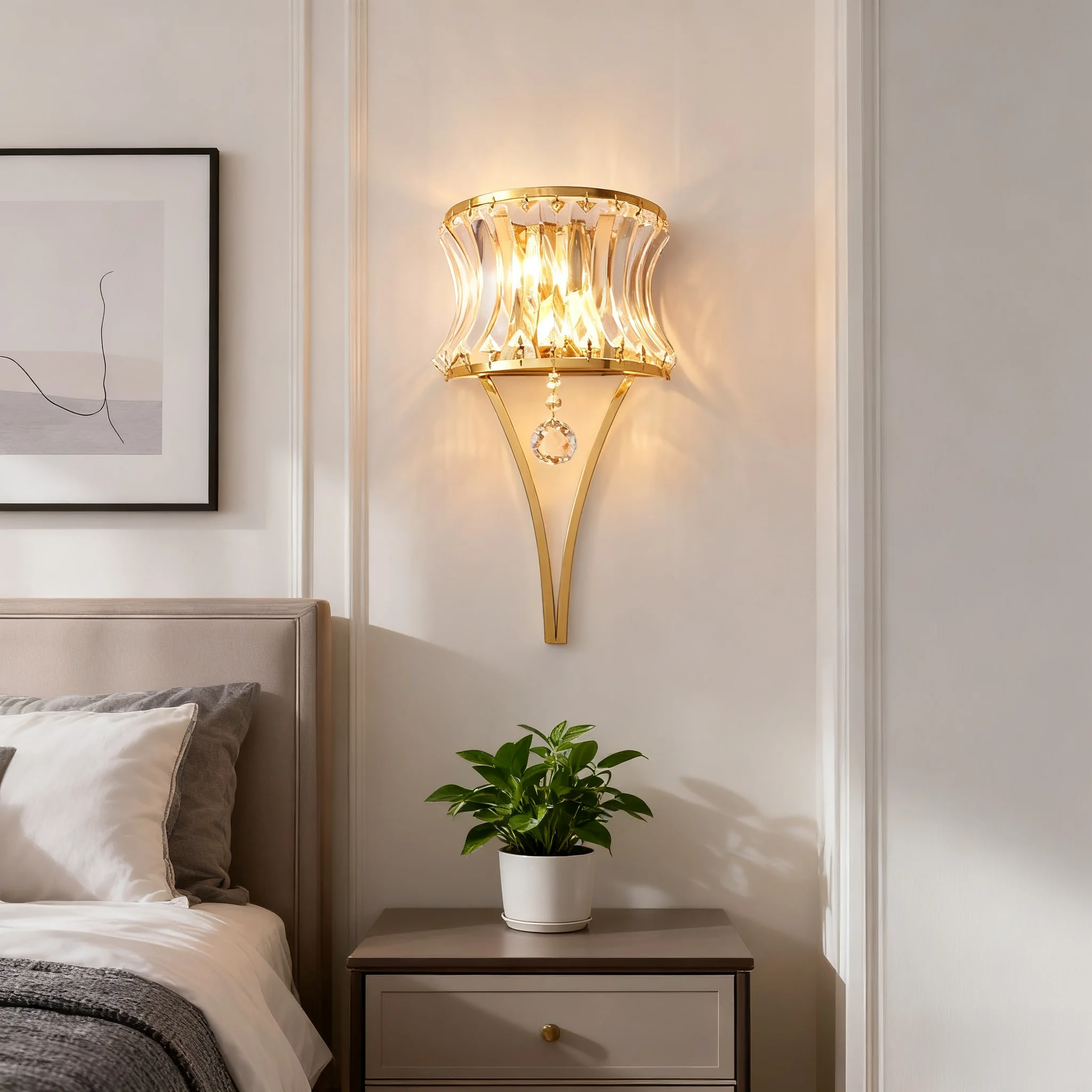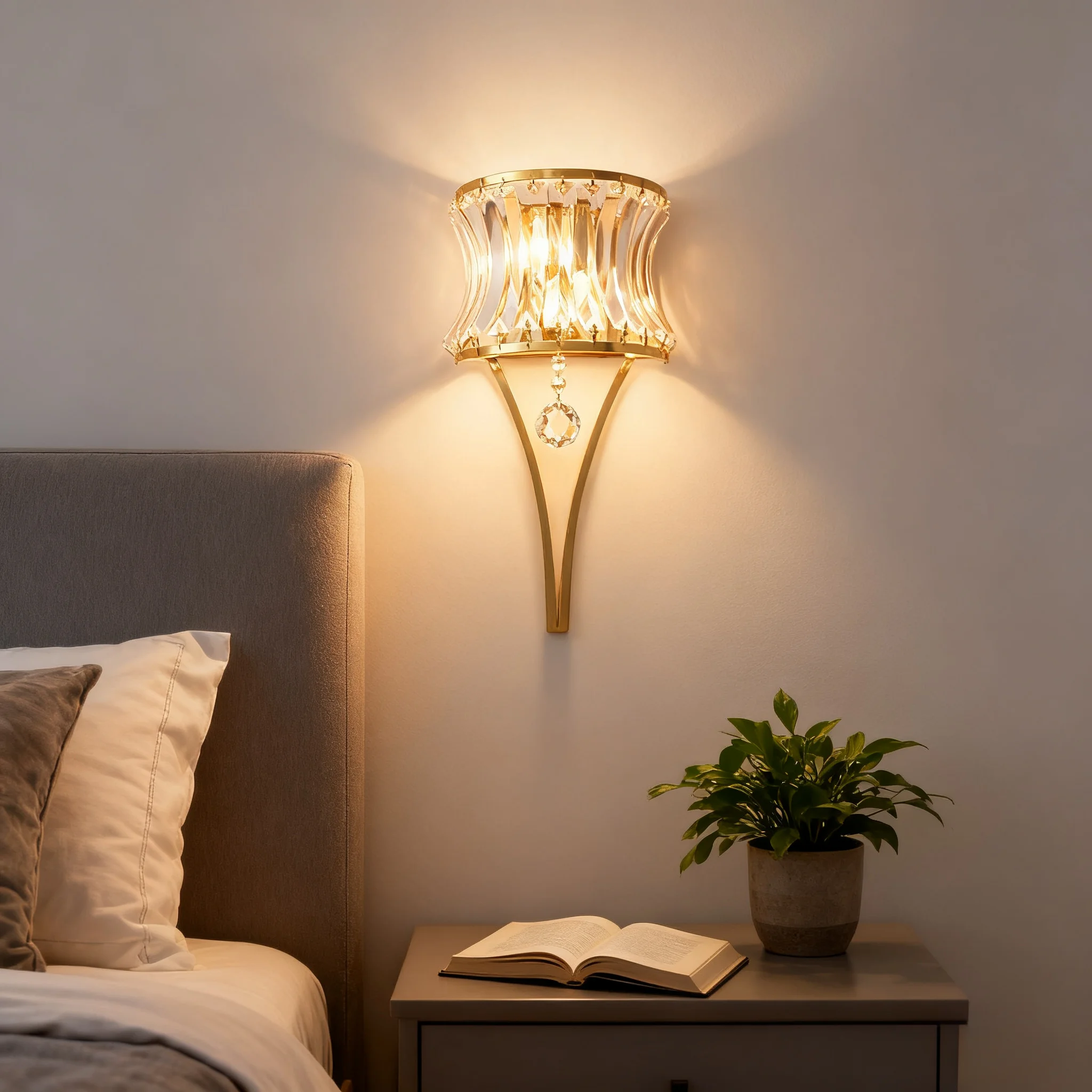 JACKSUN Modern Golden Crystal Wall Sconce Bedside Wall Lamp for Home Living Room TV Background Wall Hallway Bedroom Home Office