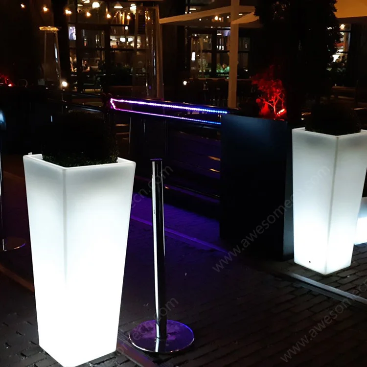 Modern 16-Color LED Illuminated Square Flower Vase Pot Trays Lighted Vase for Planters and Garden Decor