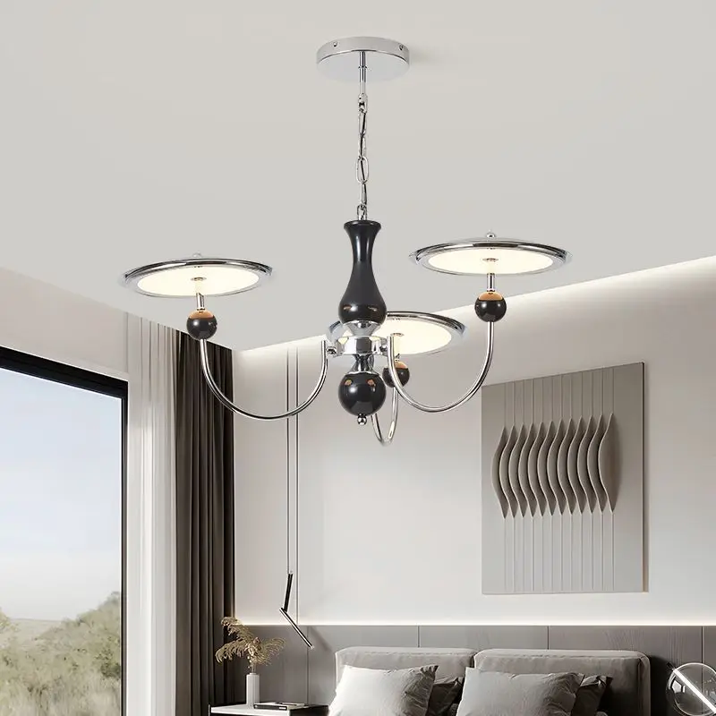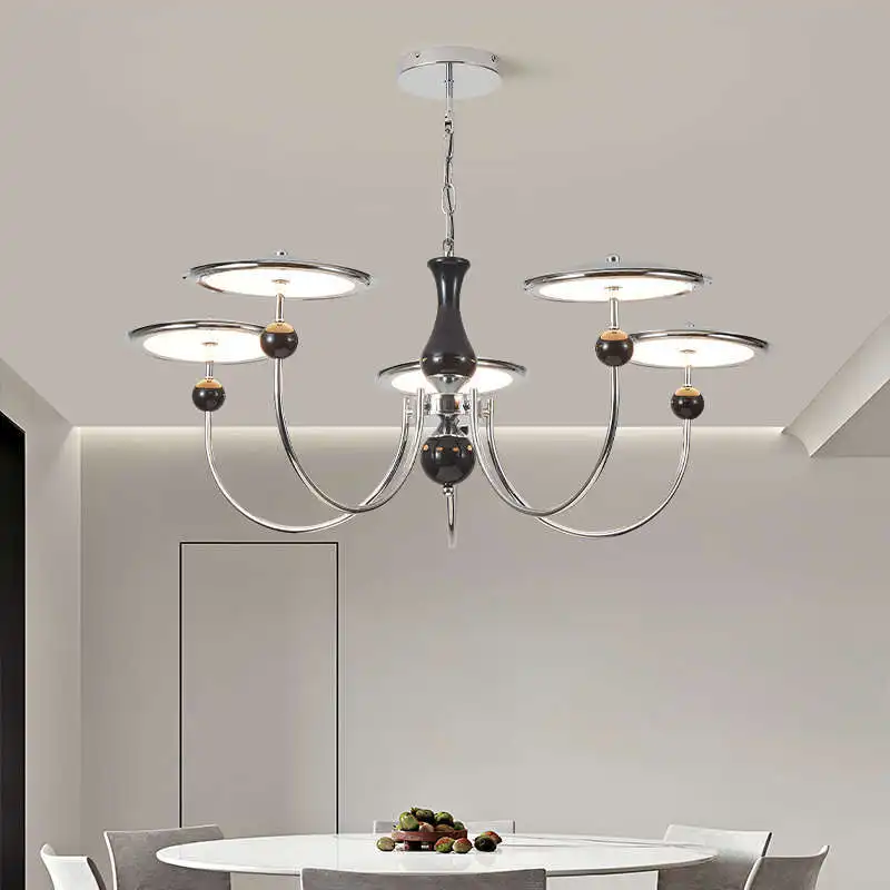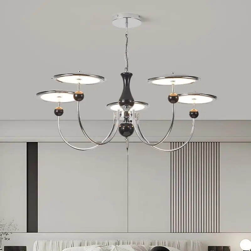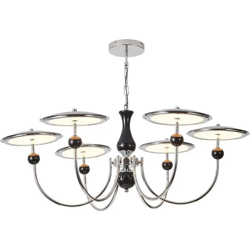 JACKSUN Modern Simple Star Track Flying Saucer Chandelier Medieval Living Room Pendant Light Retro French Chrome for Restaurant