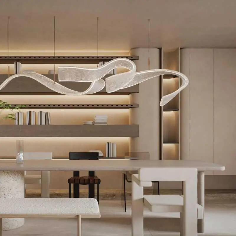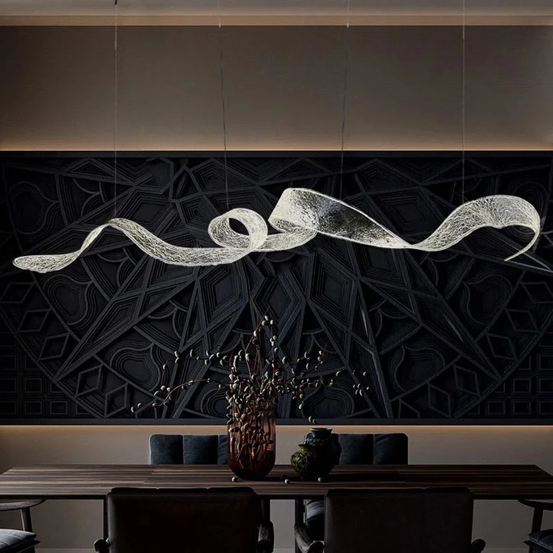 JACKSUN Hotel Sales Office Acrylic Ribbon Chandelier Modern Luxury High-End Middle Pendant Light Sand Table Pendant Lamp