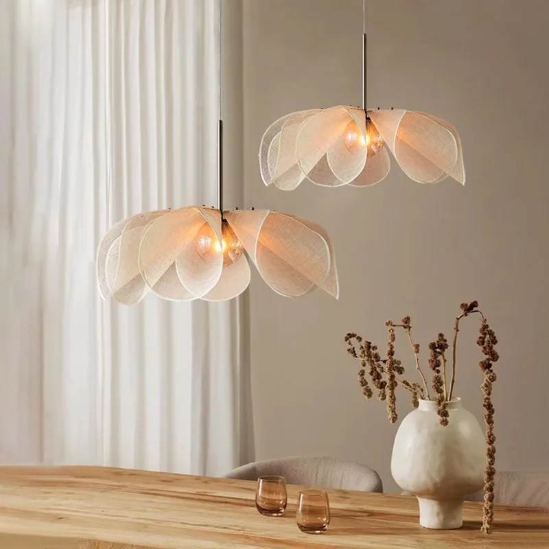 Wabi-Sabi Handcrafted Tassel Macrame Woven Pendant Light Twine Braid Rattan Led Rattan Chandelier