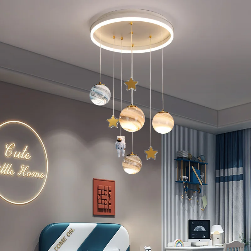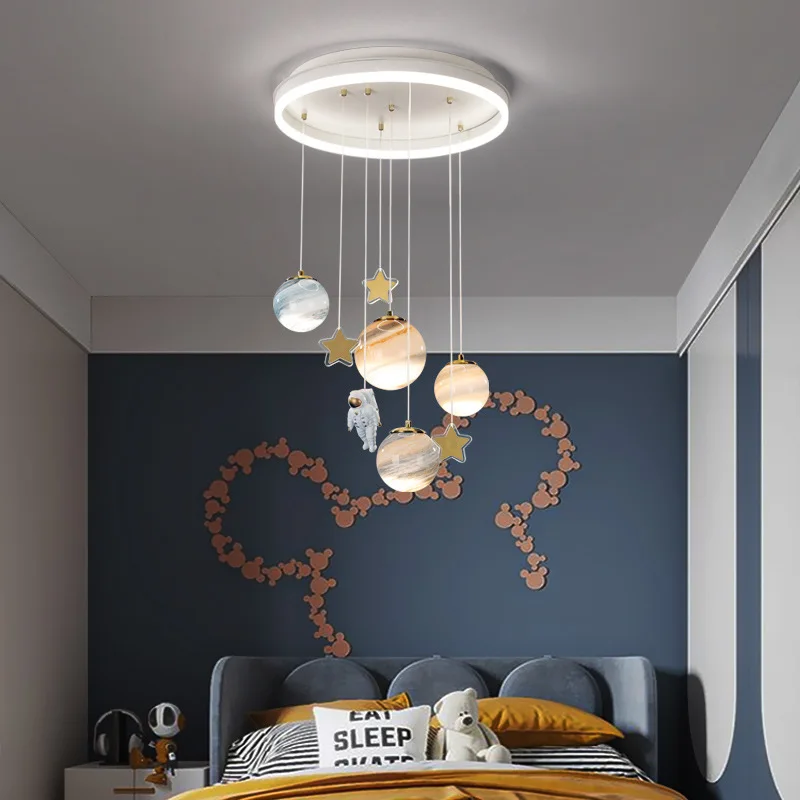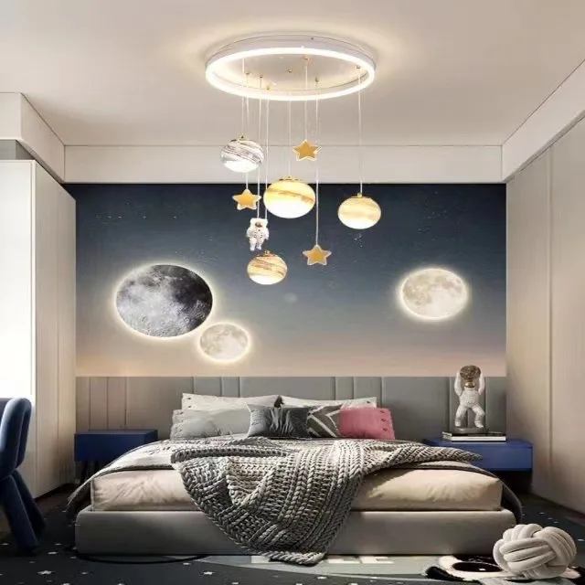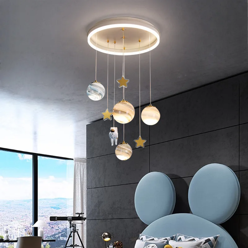 JACKSUN Creative Wandering Earth Princess Room Pendant Lamp for Children's Bedroom Small Iron Space Planet Pendant Lights