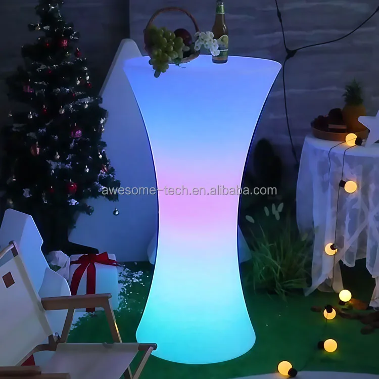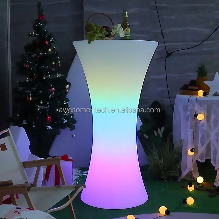 LED Color-Changing Slim Cocktail Table Plastic Illuminated for Home Bar Living Room School or Park Use for Hotels