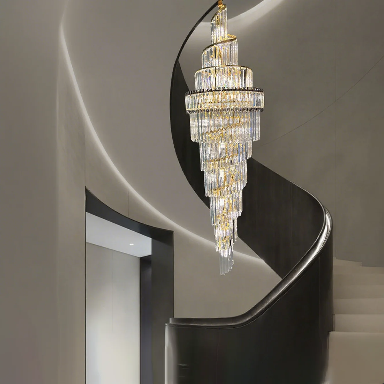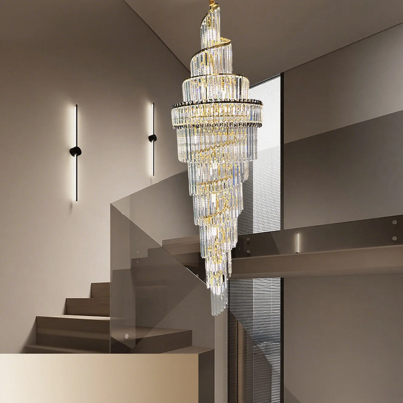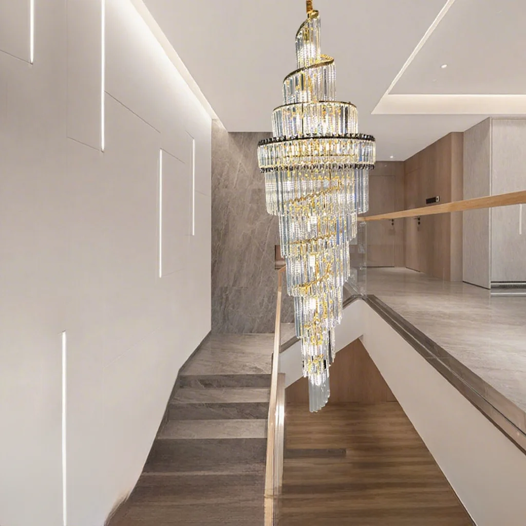 Zeal Lighting Long Stairwell Hanging Pendant Light Staircase Villa Duplex Stair High Ceiling Crystal Chandelier