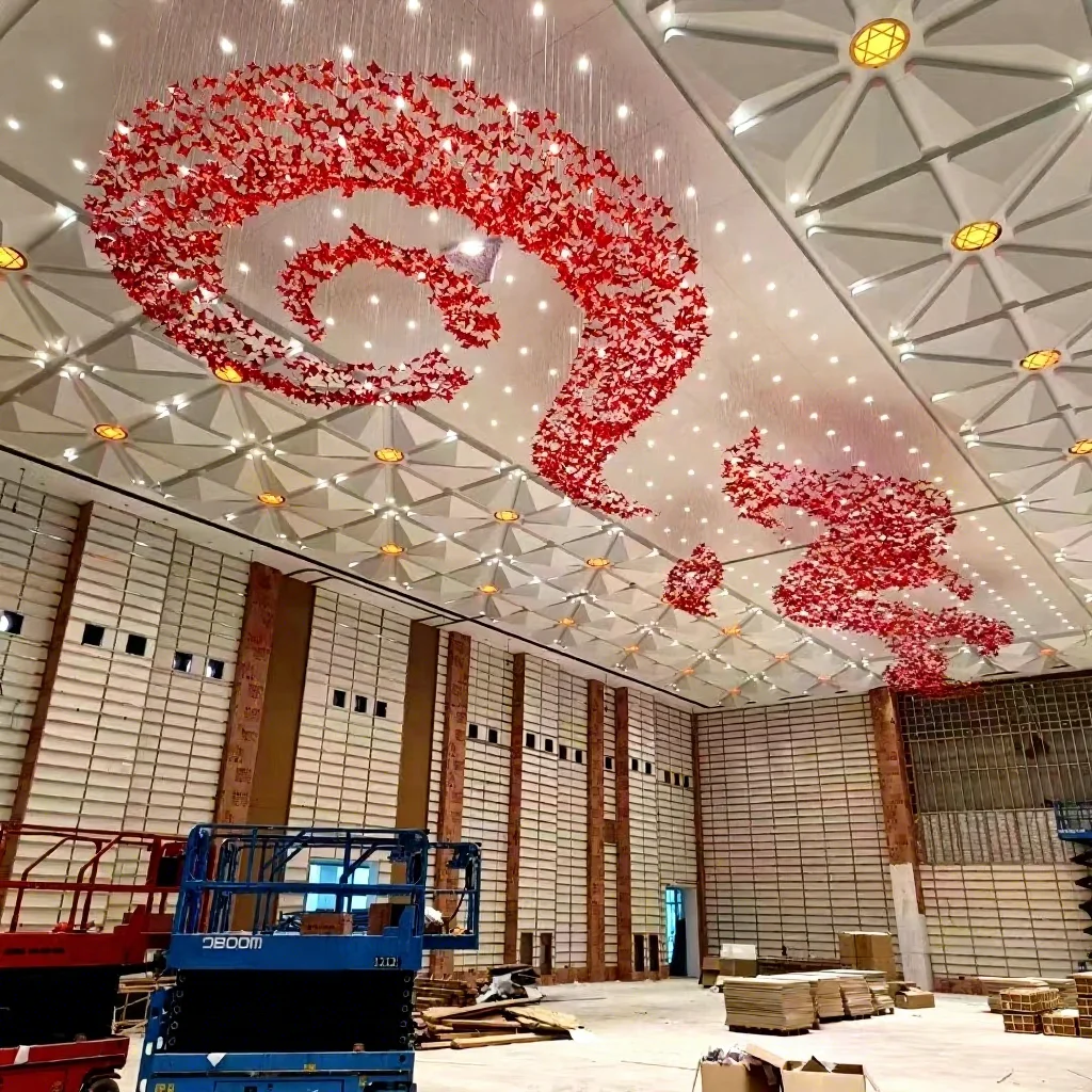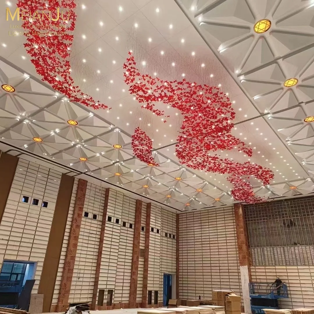 Wedding Hall Chandelier Hotel Hanging Pendant Light Customized Amber Crystal Chandelier Lighting for Lobby