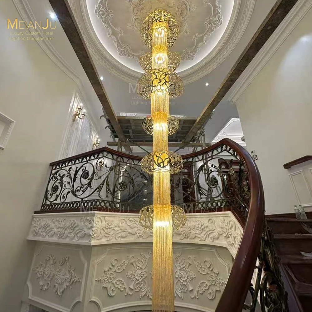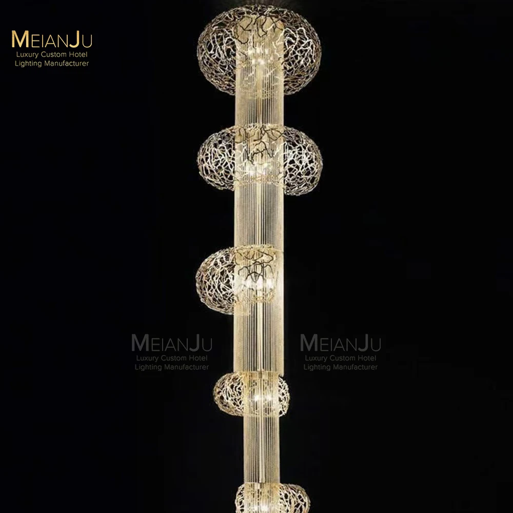 Zeal Lighting Long Stairwell Hanging Pendant Light Staircase Villa Duplex Stair High Ceiling Crystal Chandelier
