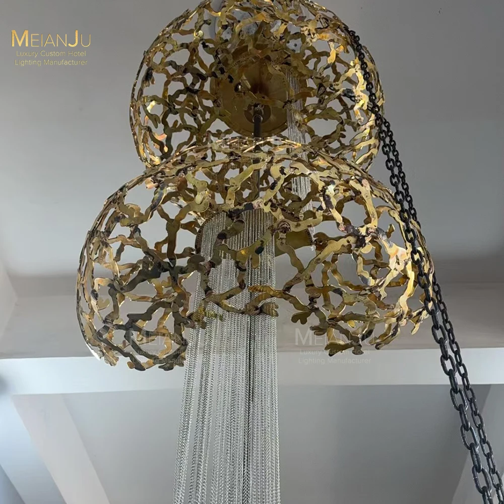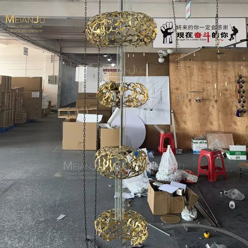Zeal Lighting Hotel Lobby Hall Decorative Large Hanging Light Customized Long Gold Crystal Elegant Chandelier