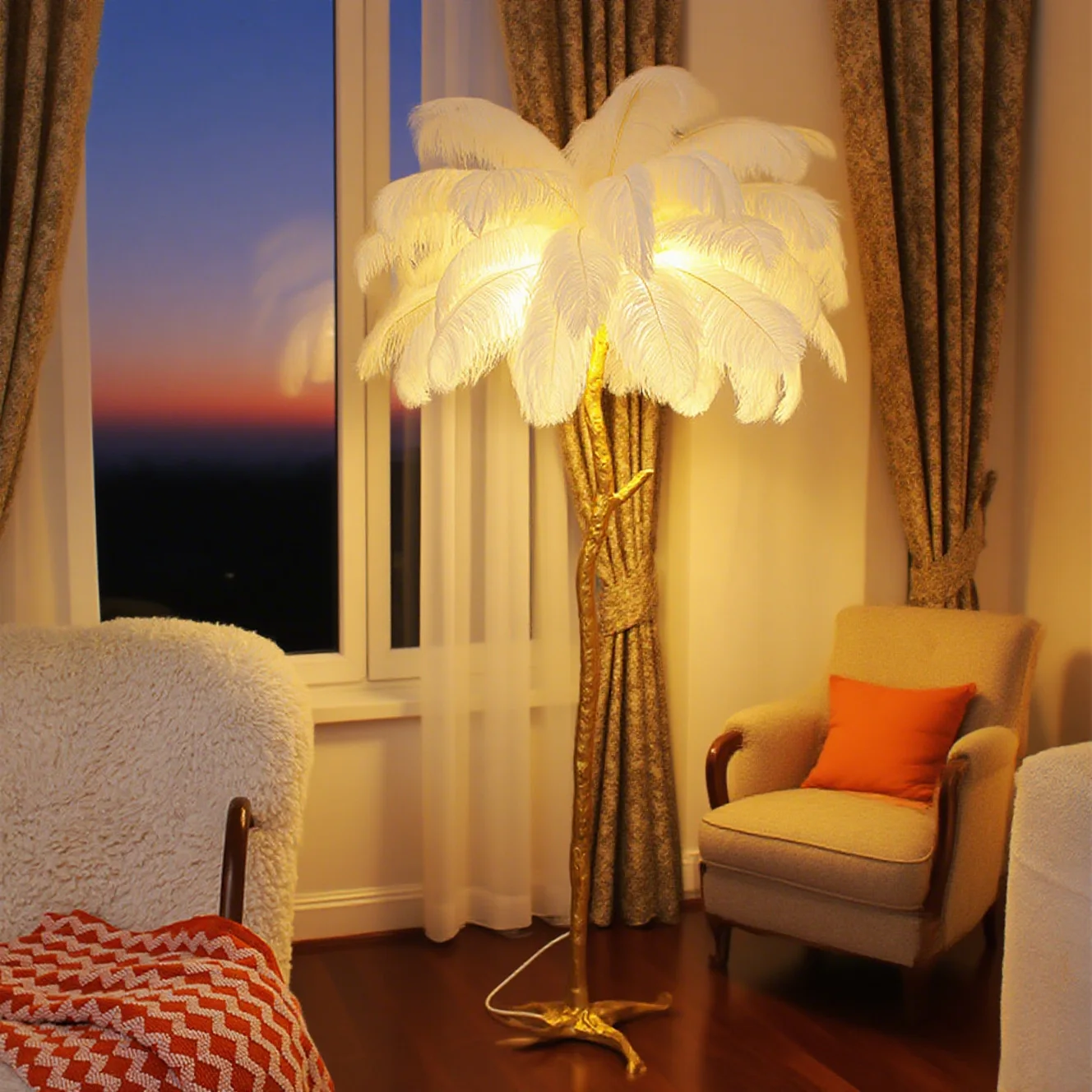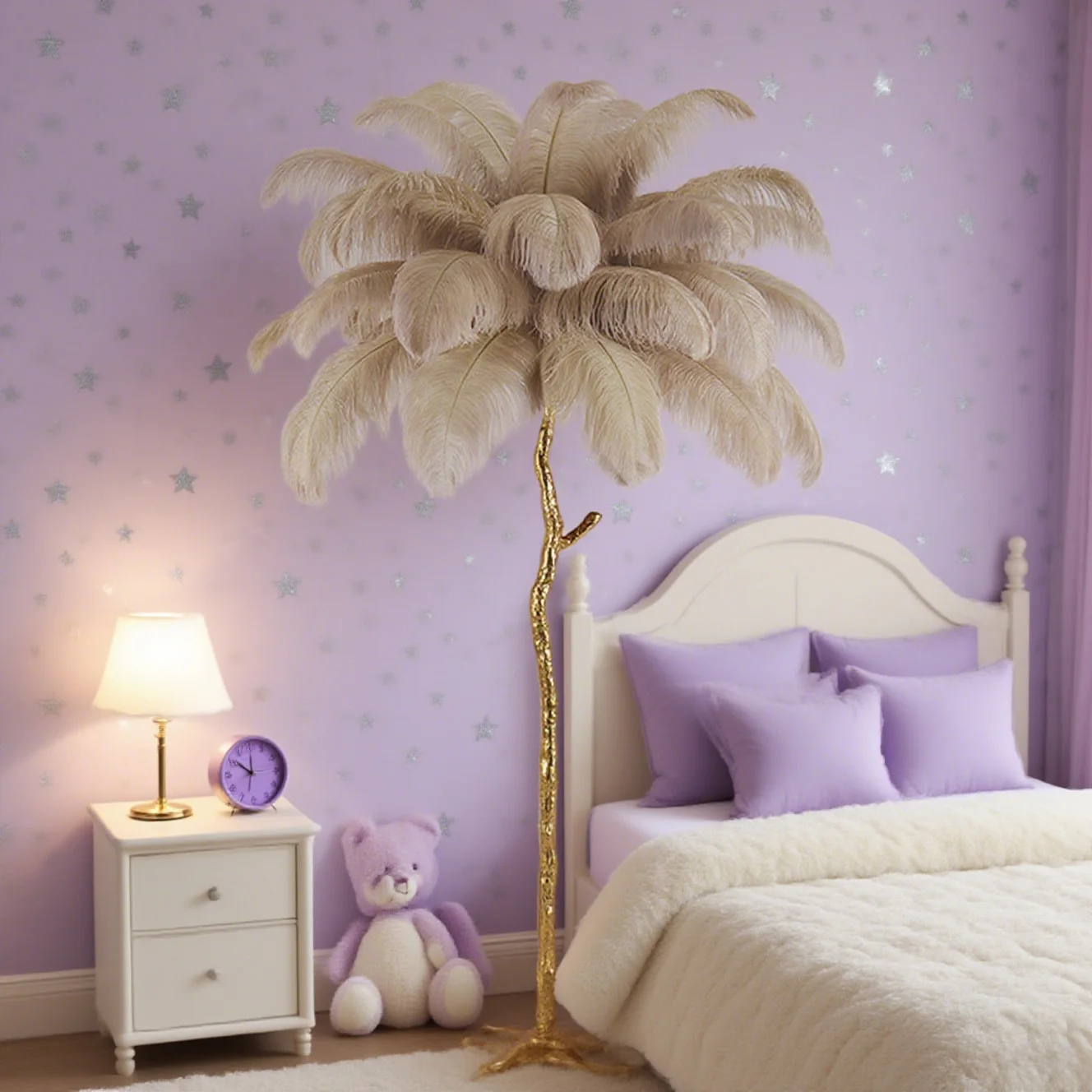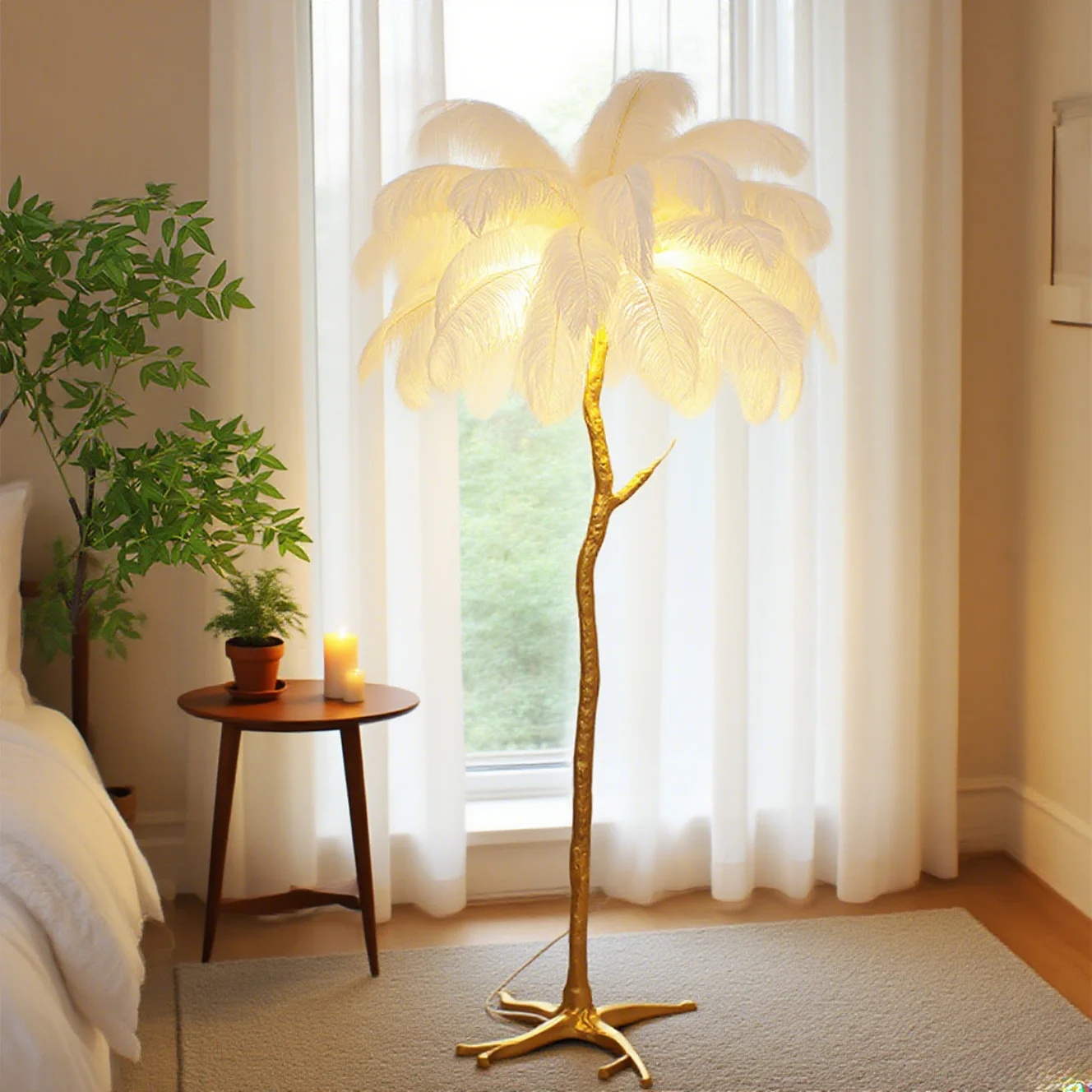 JACKSUN Luxury Living Room Bedroom Princess Room Bedside Table Lamp Full Copper Tree Branch Decoration Feather Floor Lamps