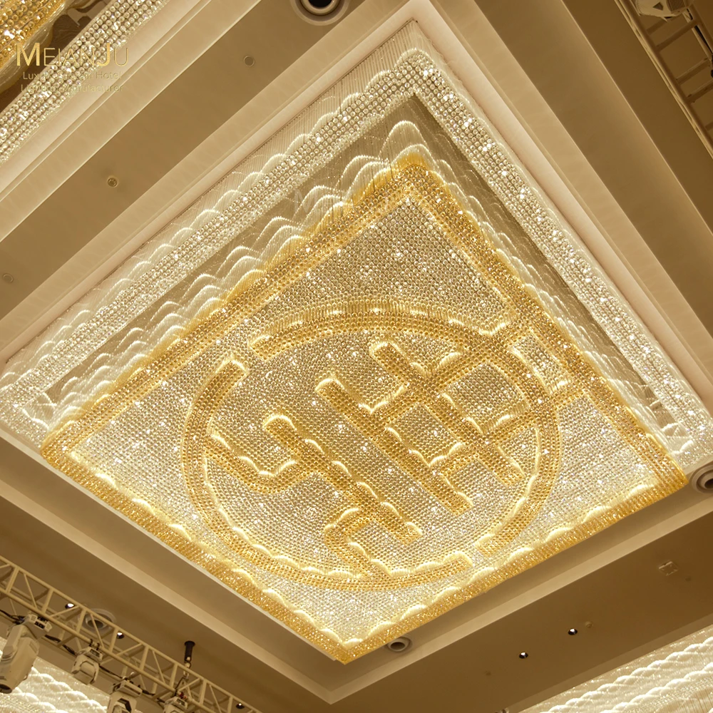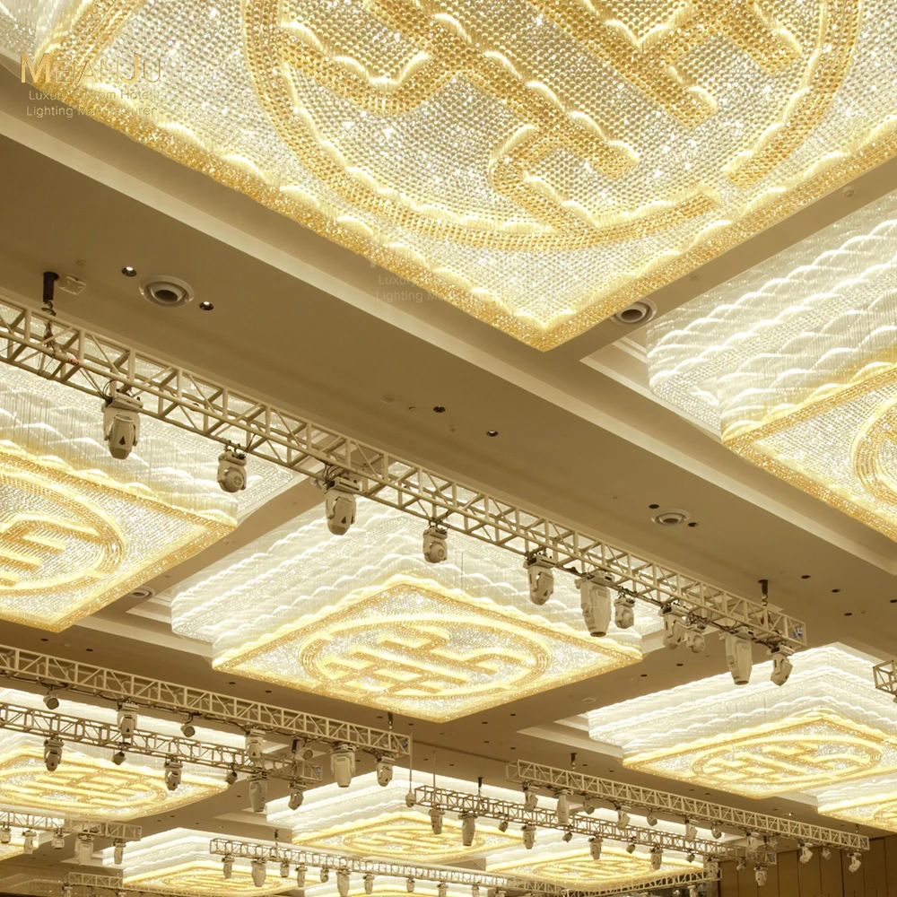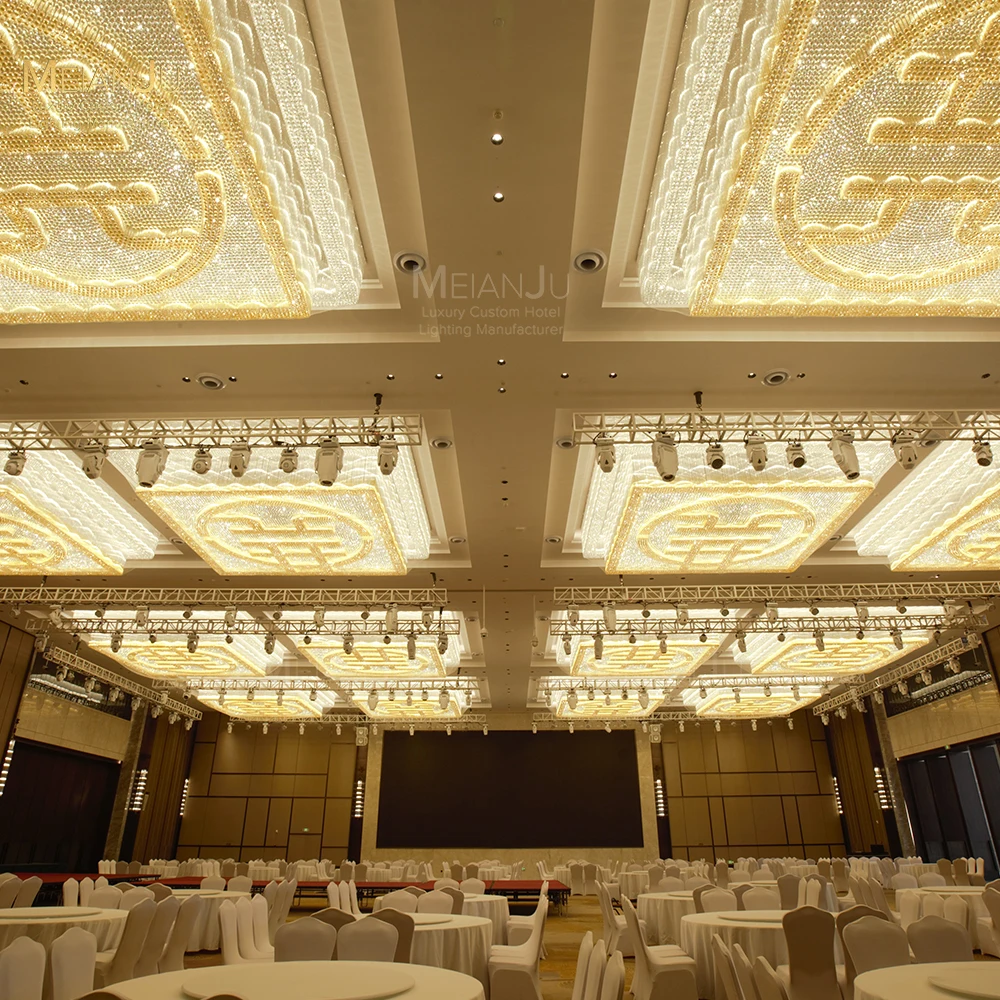 Wedding Hall Chandelier Hotel Hanging Pendant Light Customized Amber Crystal Chandelier Lighting for Lobby