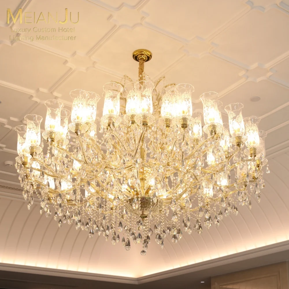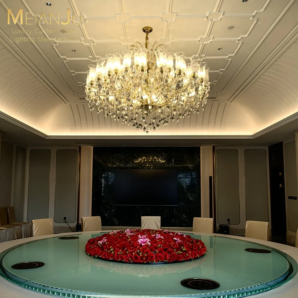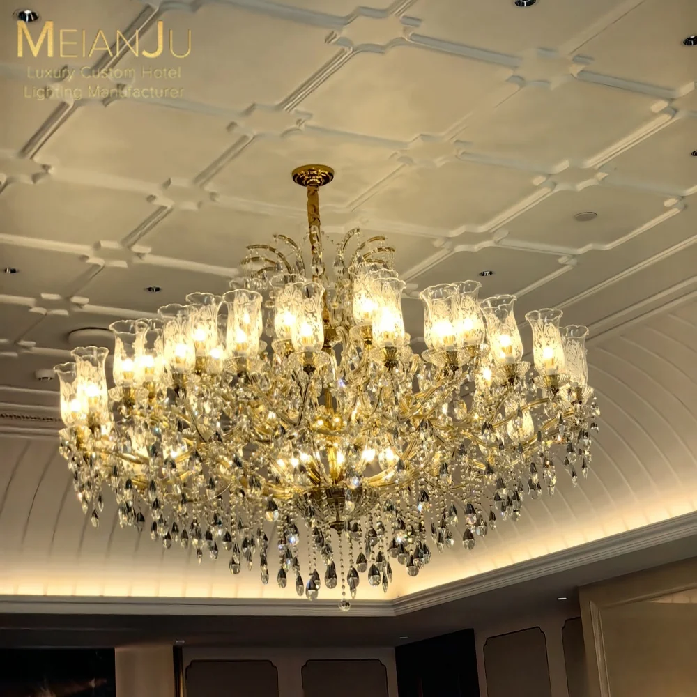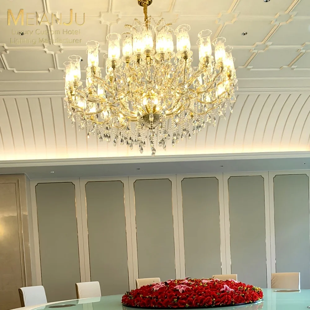 Wedding Hall Chandelier Hotel Hanging Pendant Light Customized Amber Crystal Chandelier Lighting for Lobby