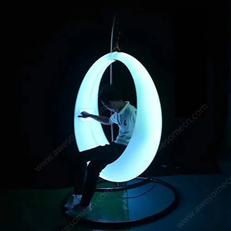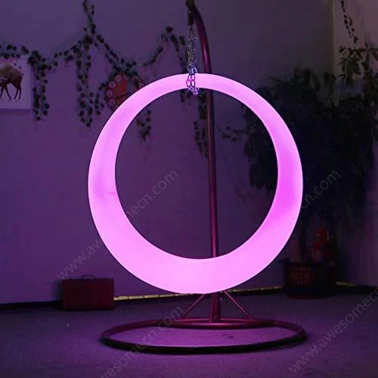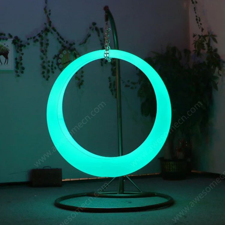 Garden Outdoor Illuminated Hanging Round Swing Chairs Set Rope Swing Swivel with Frame Strip Lights Lighting Furniture