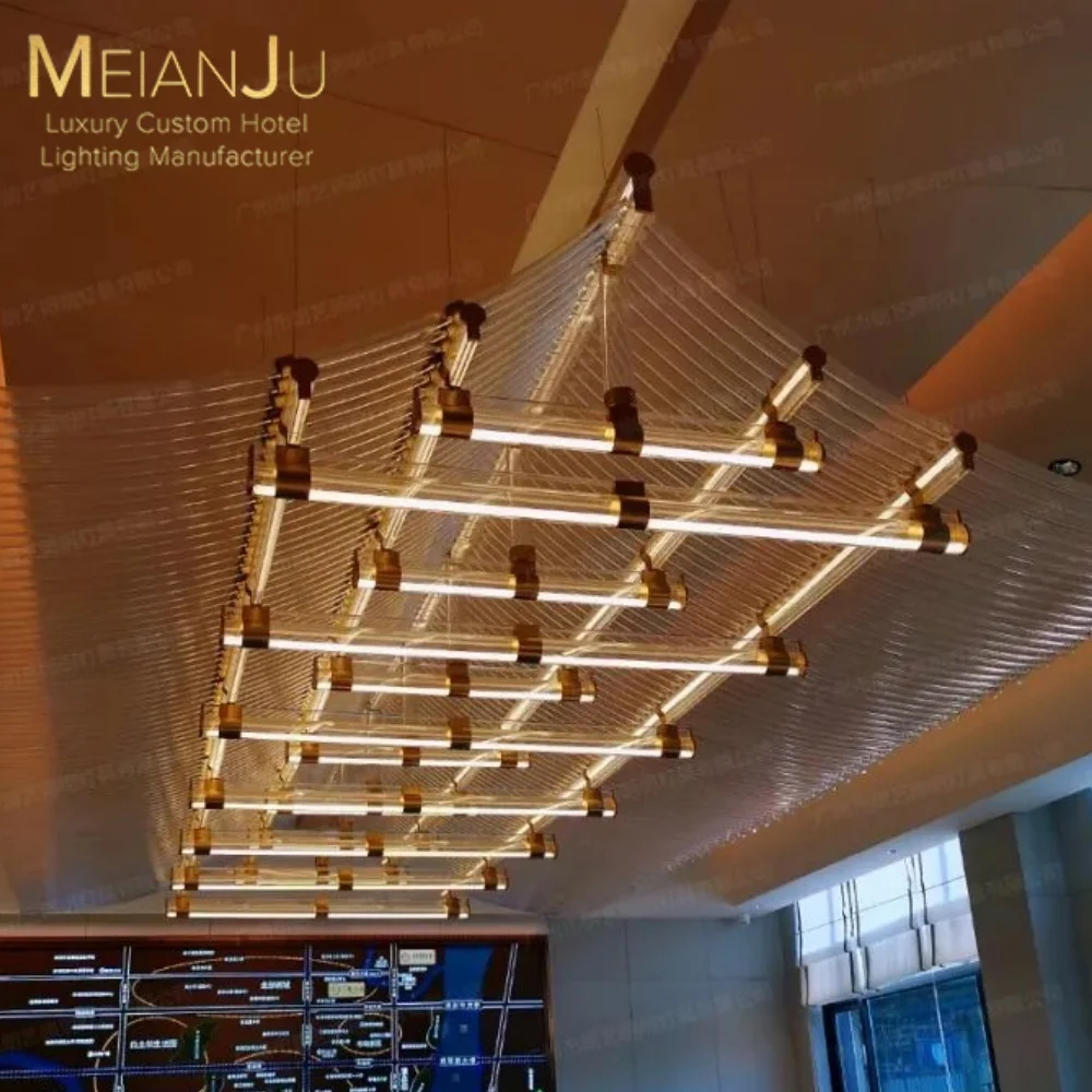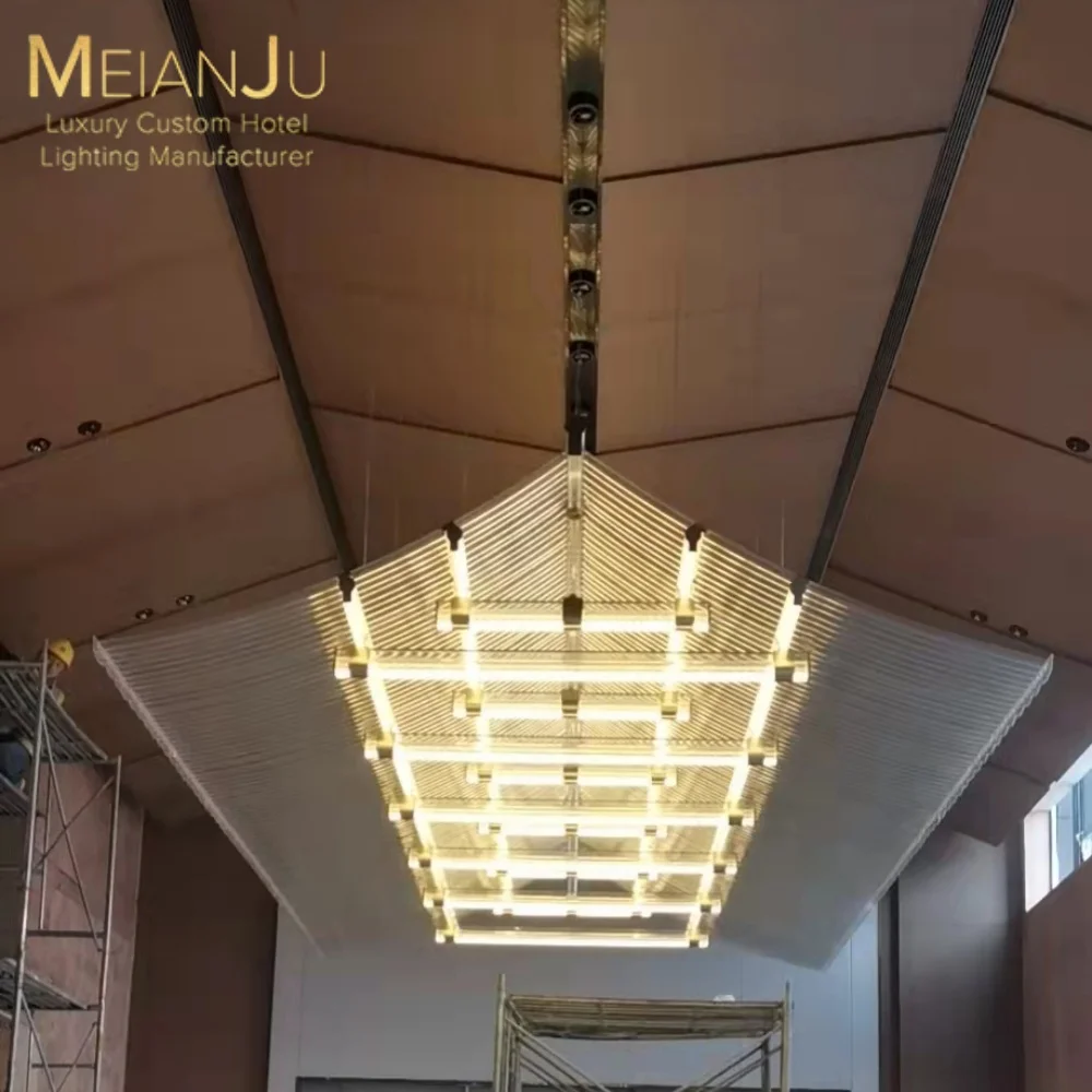 Luxury Modern Hospitality Acrylic Chandelier Custom Project Solution Premium Pendant Light for Hotel Event Decor Venues Lighting