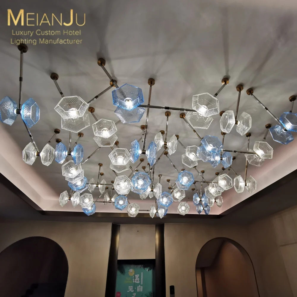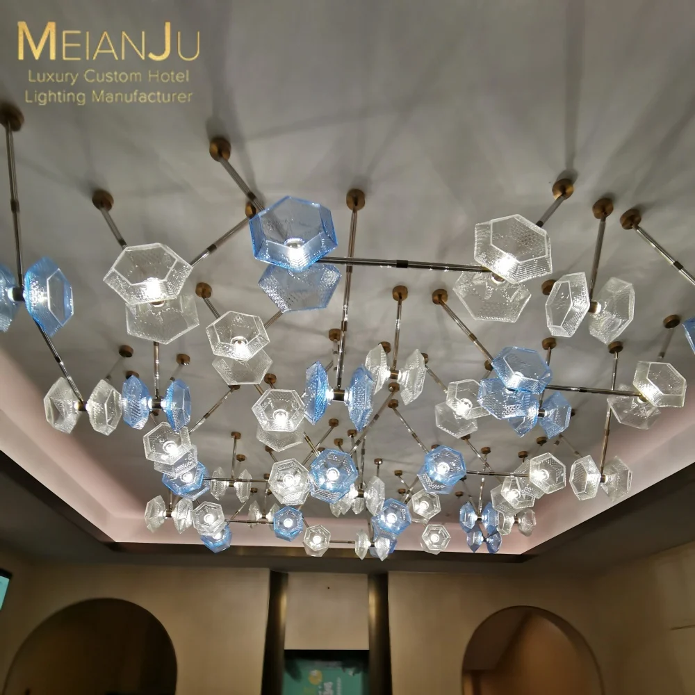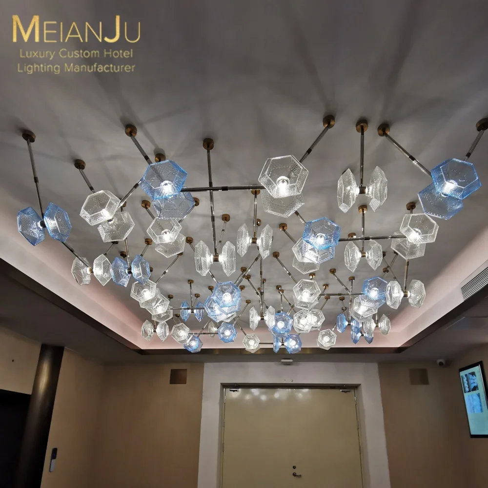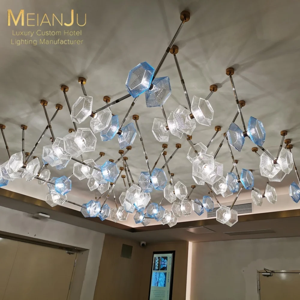 Wedding Hall Chandelier Hotel Hanging Pendant Light Customized Amber Crystal Chandelier Lighting for Lobby