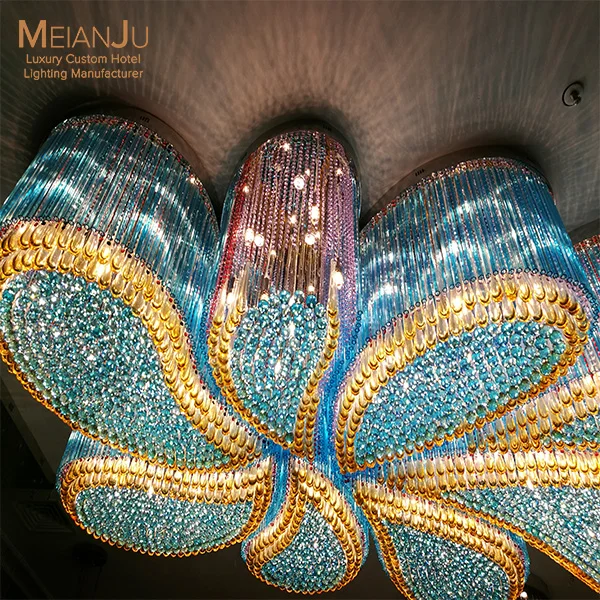 Wedding Hall Chandelier Hotel Hanging Pendant Light Customized Amber Crystal Chandelier Lighting for Lobby