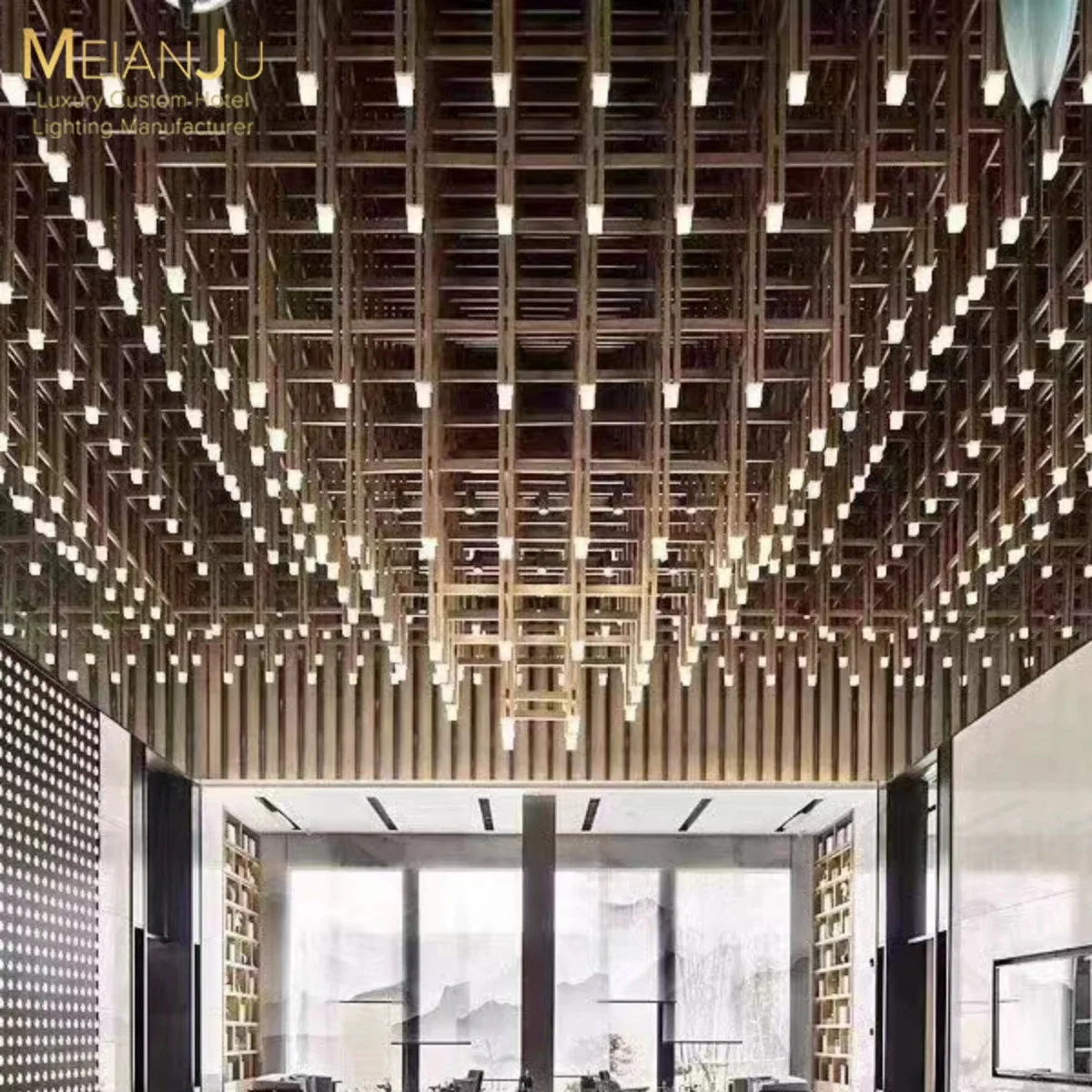 Custom 3D Printed AC Hotel Sand Table Chandelier Villa Club Creative Line Lamps Adjustable Height Non-Standard Front Desk Sales