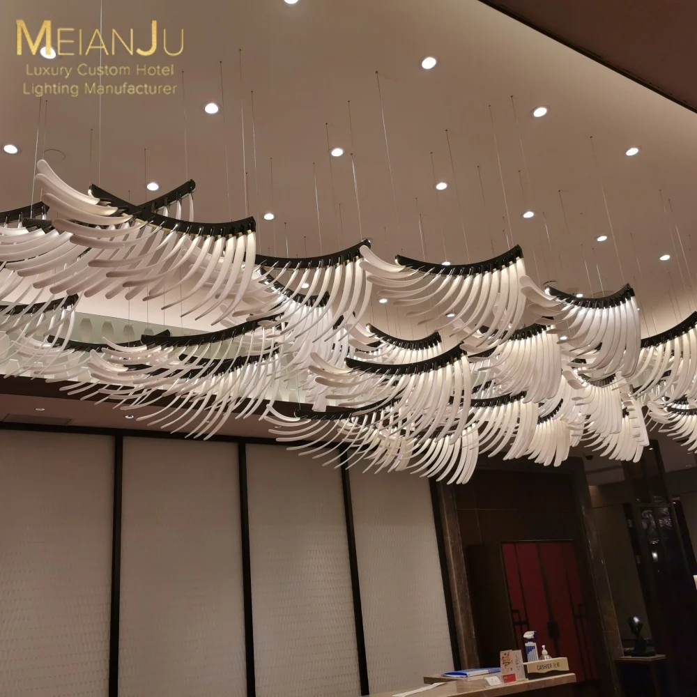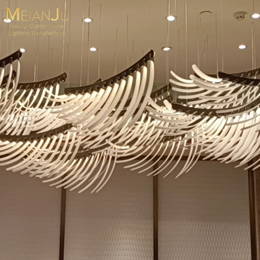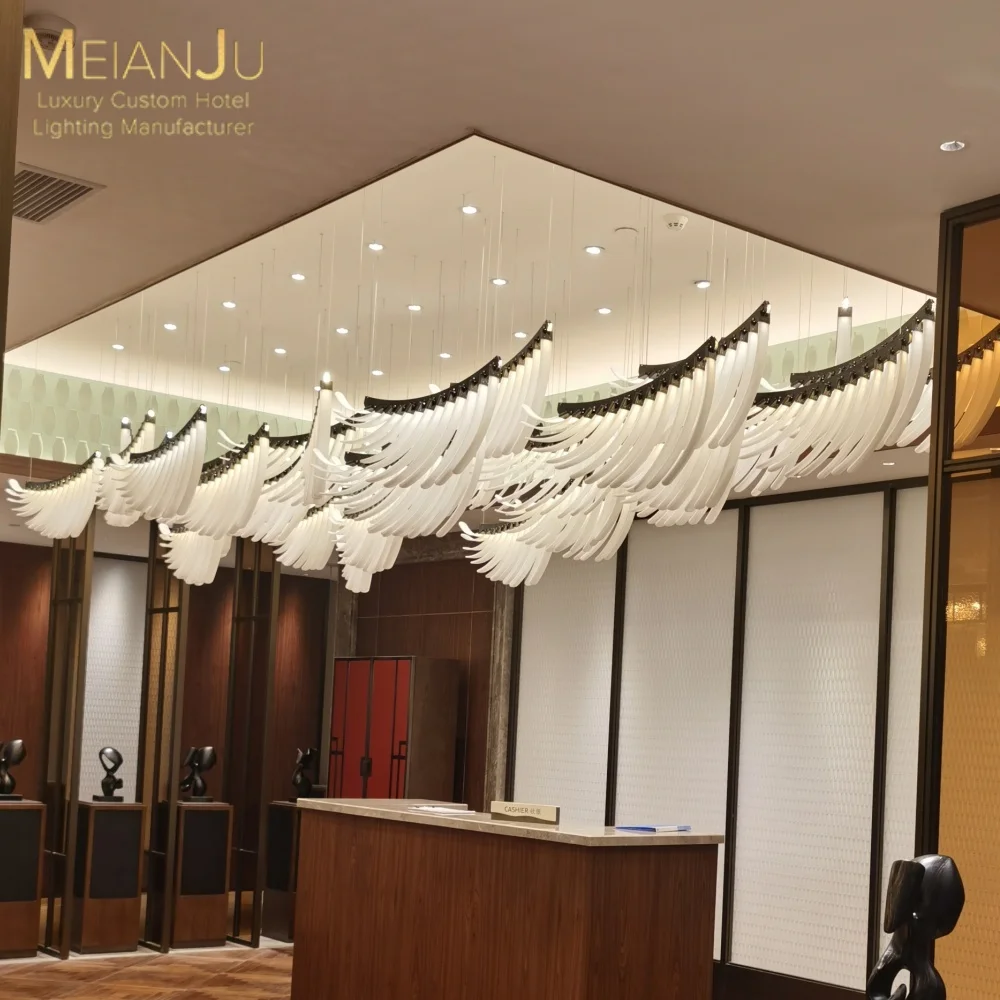 Custom Wing Acrylic Cluster Chandelier for Luxury Boutique Hotel Lobbies Elegant Pendant Lights Art Centerpiece Suspension