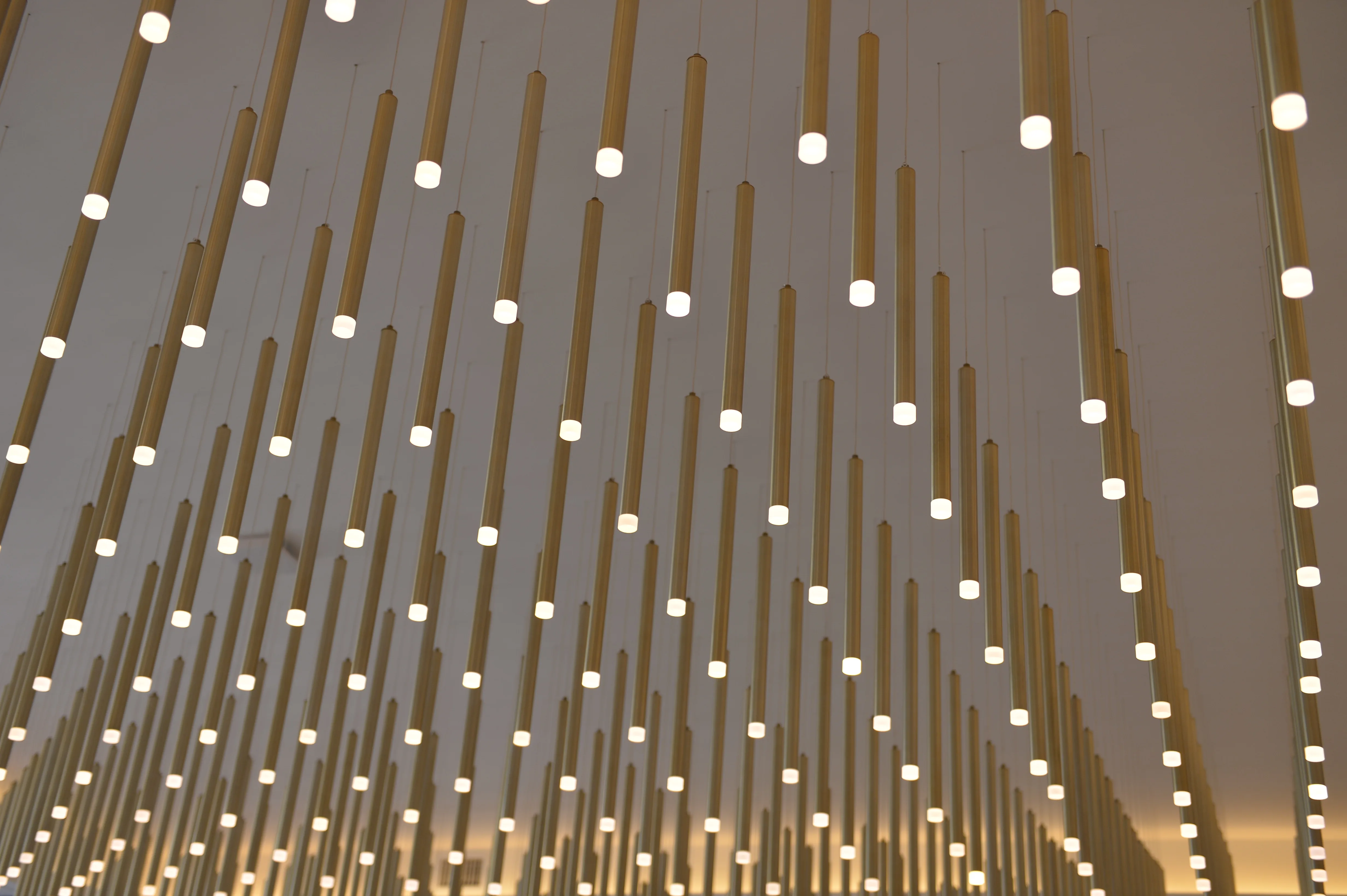 Nordic Art Gold Luxury Lobby Residential Decoration Chandelier Iron Acrylic Round Tube Linear Pendant Light
