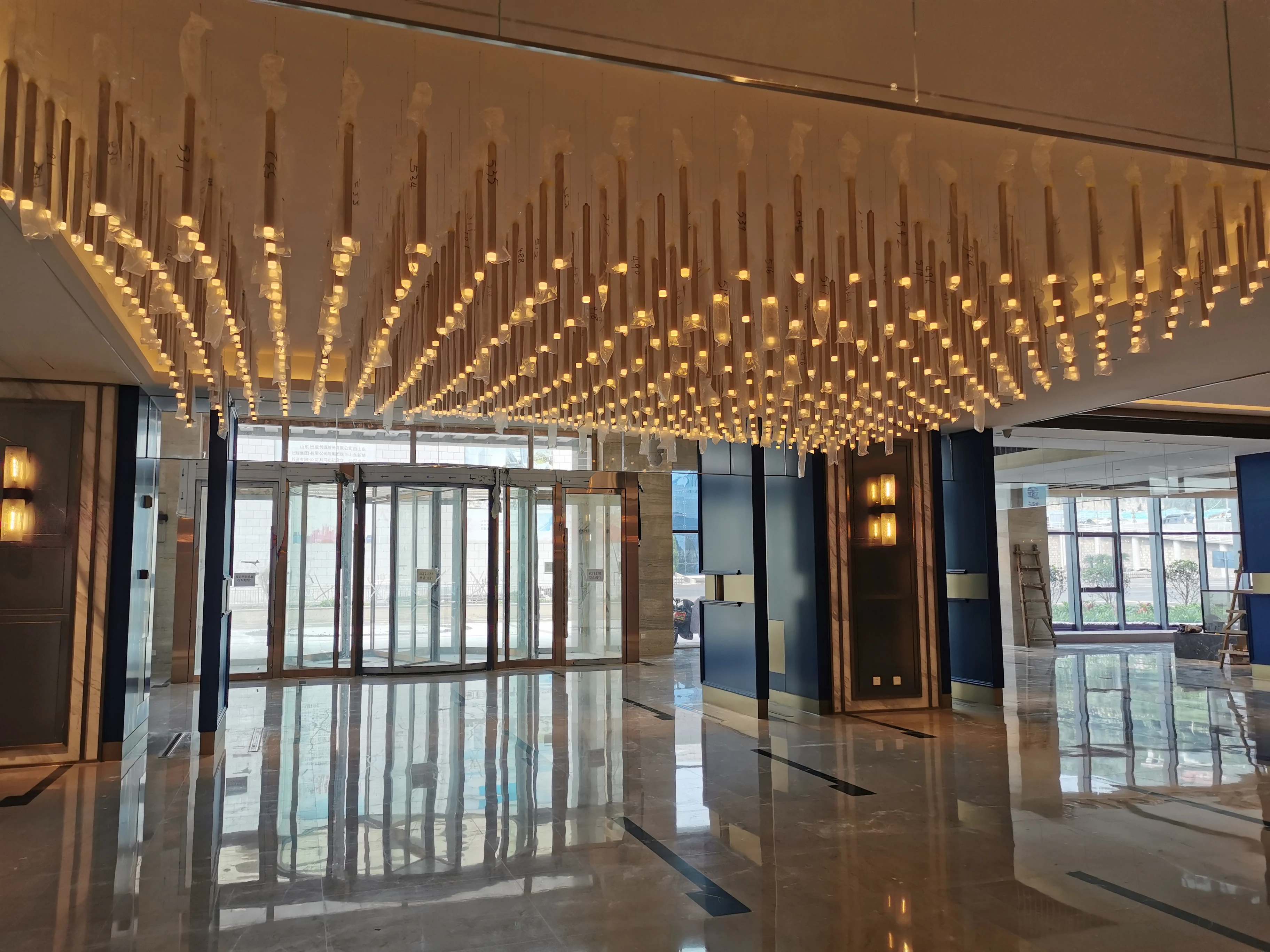 Wedding Hall Chandelier Hotel Hanging Pendant Light Customized Amber Crystal Chandelier Lighting for Lobby