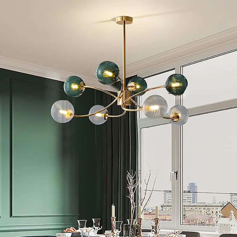 JACKSUN Nordic Light Luxury Living Room Magic Bean Chandelier Modern French Style Bubble Molecular Gold Iron