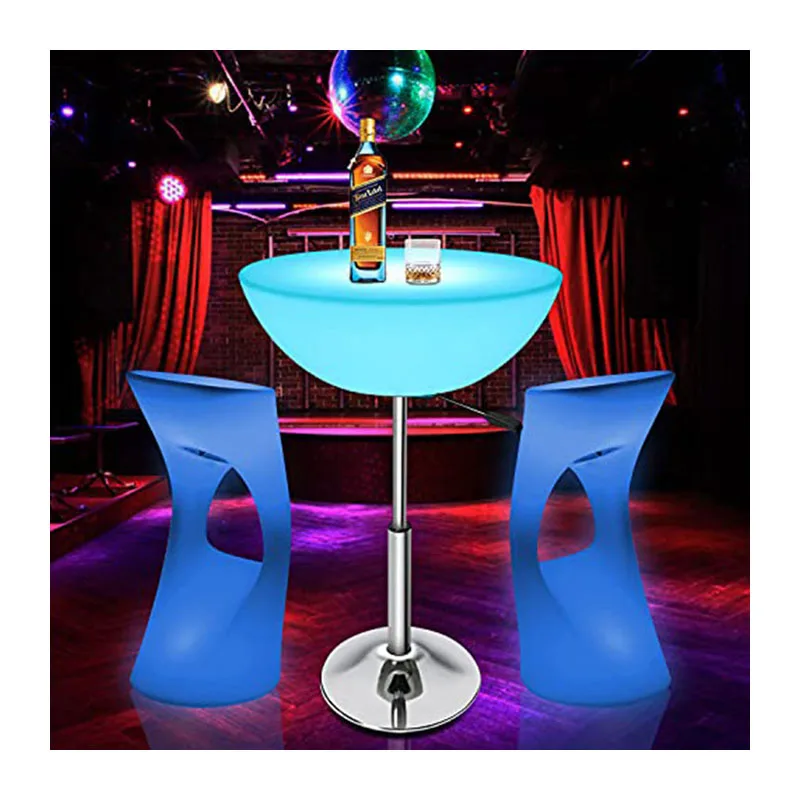 Colorful LED Modern Plastic High-legged Bar Tables for Home Bar Restaurants Social Gatherings