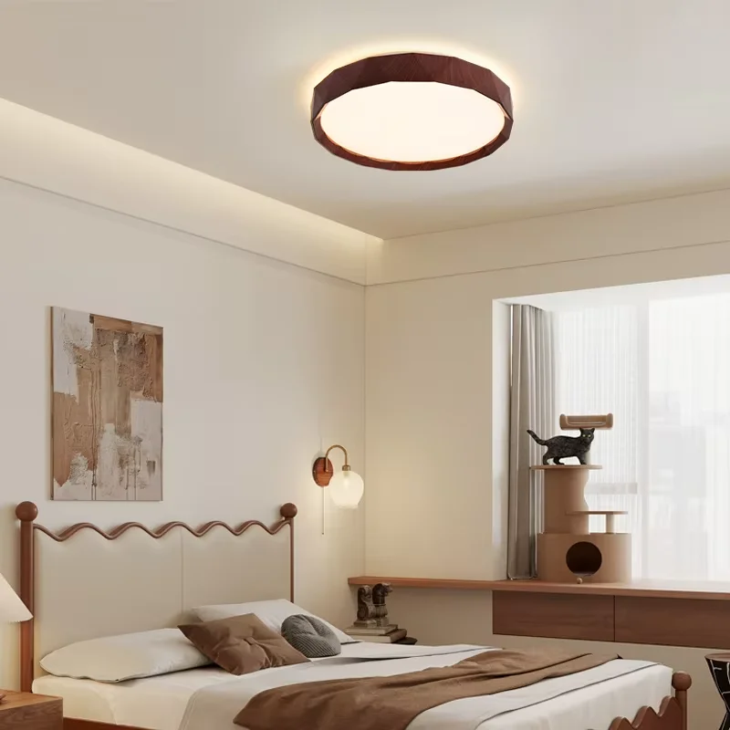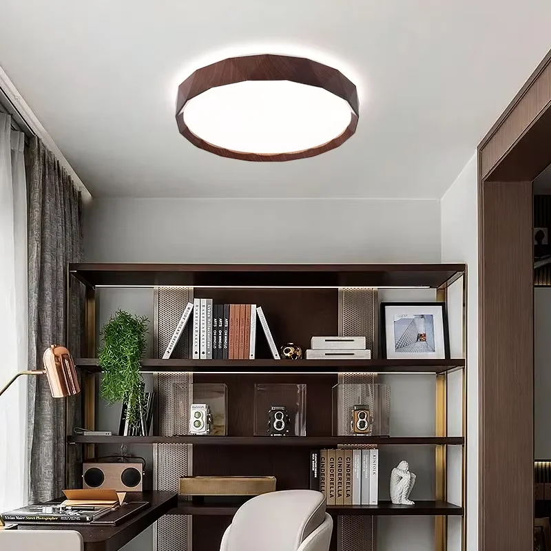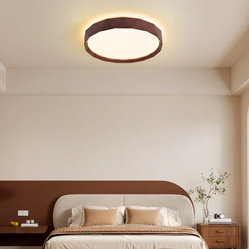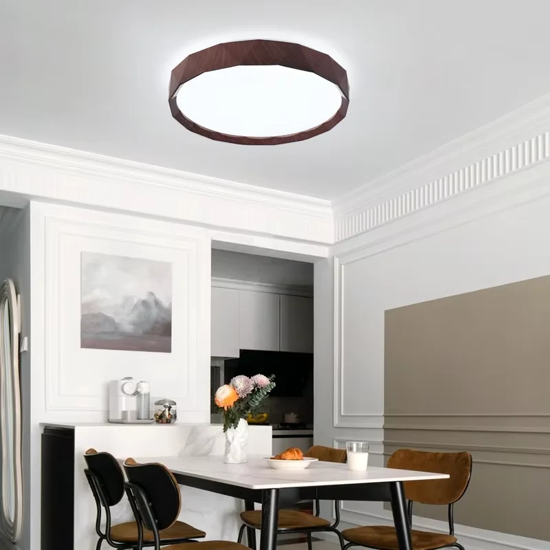 Modern Scandinavian IP44 Walnut Colour Square LED Ceiling Lamp for Bedroom and Living Room