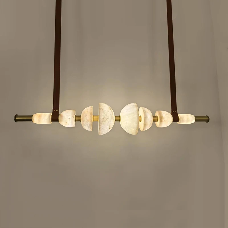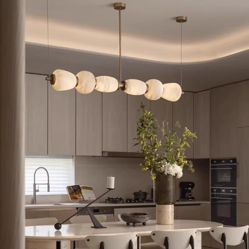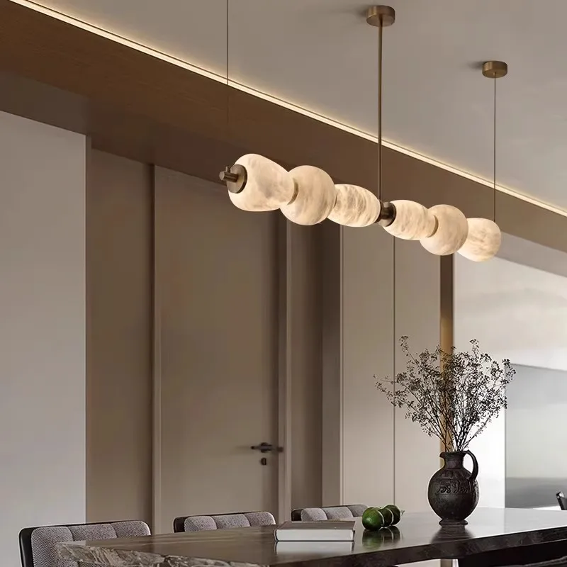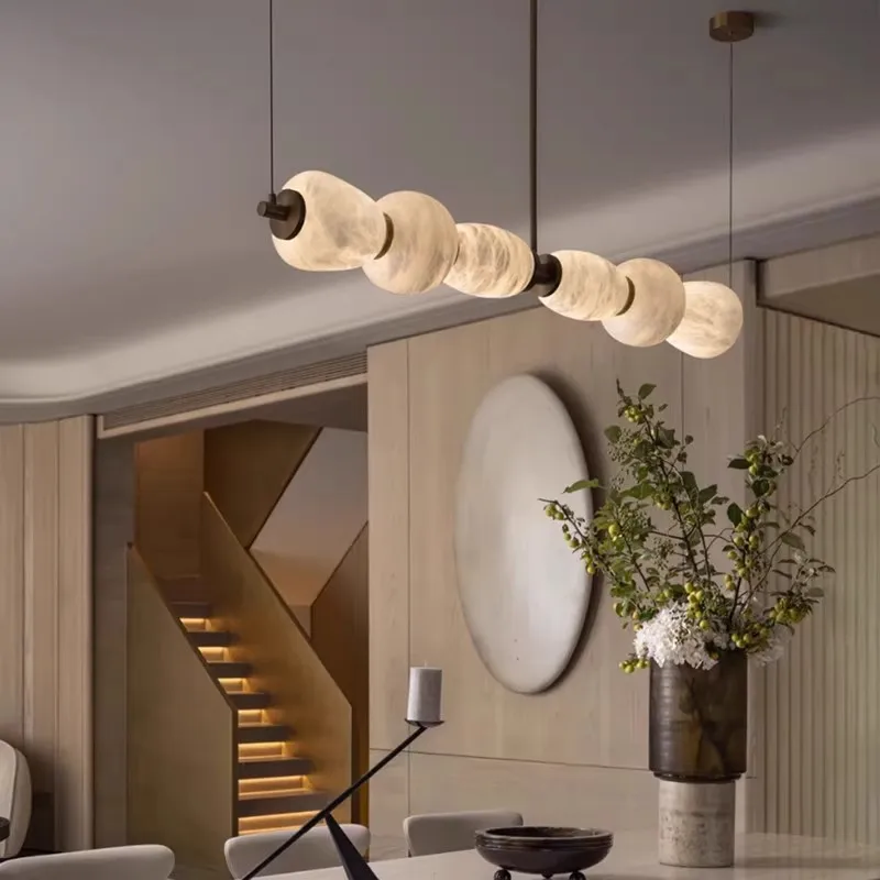 Light Luxury Copper Marble Chandelier Designer, Long Strip Dining Room bar Counter Study Lamp, High-end Front Desk Chandelier